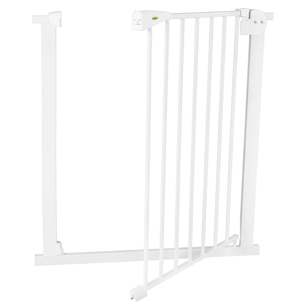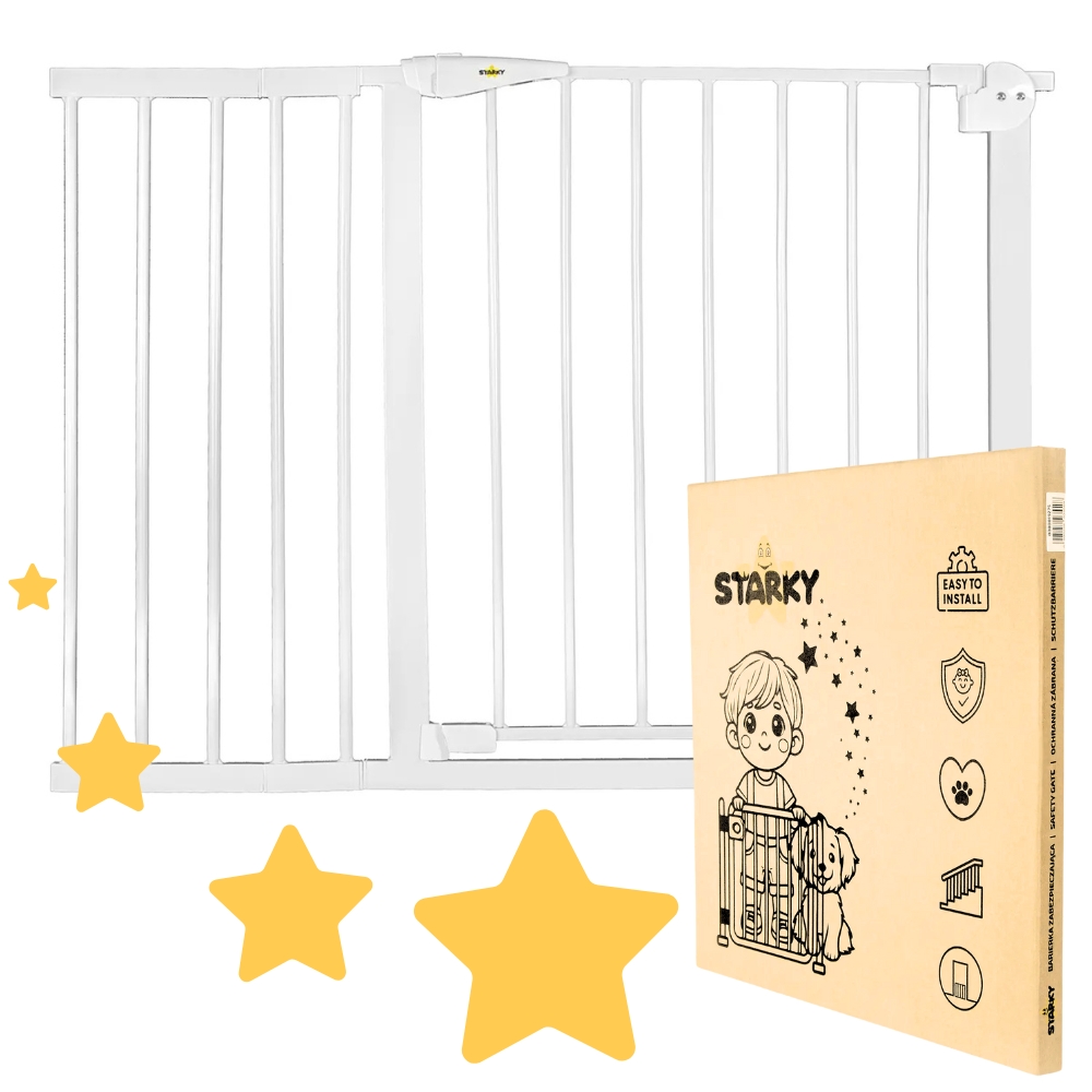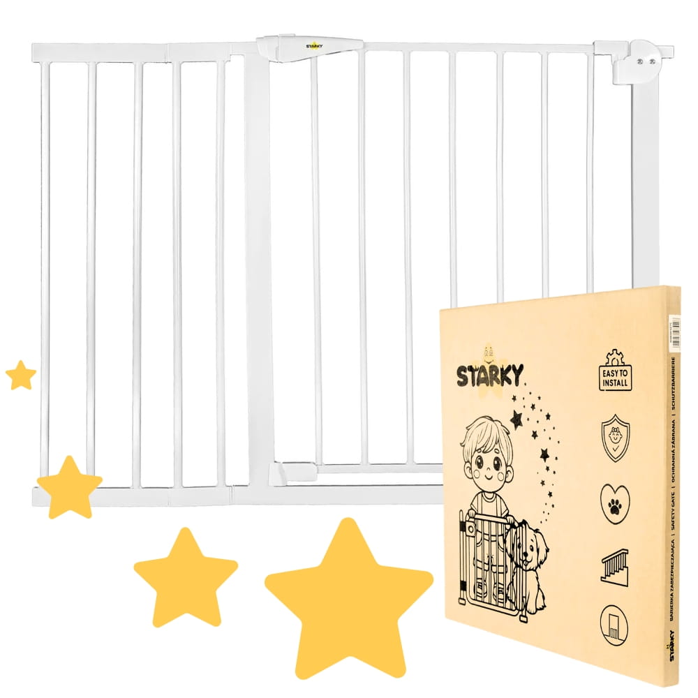 Bramka ochronna marki STARKY wyróżnia się wyjątkowo łatwym montażem rozporowym, który nie wymaga wiercenia ani użycia narzędzi. Stabilne mocowanie dociskowe sprawia, że ściany pozostają nienaruszone, a barierka idealnie trzyma się na miejscu. Możesz ją zamontować w wielu miejscach, takich jak pokój dziecięcy, kuchnia, sypialnia, korytarz czy pralnia. Elementy montażowe pokryte są warstwą silikonu dzięki czemu ściany/drzwi są bezpieczne.