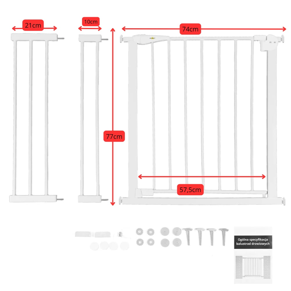 - 2 dodatkowe przedłużenia bramki (10cm i 21cm)