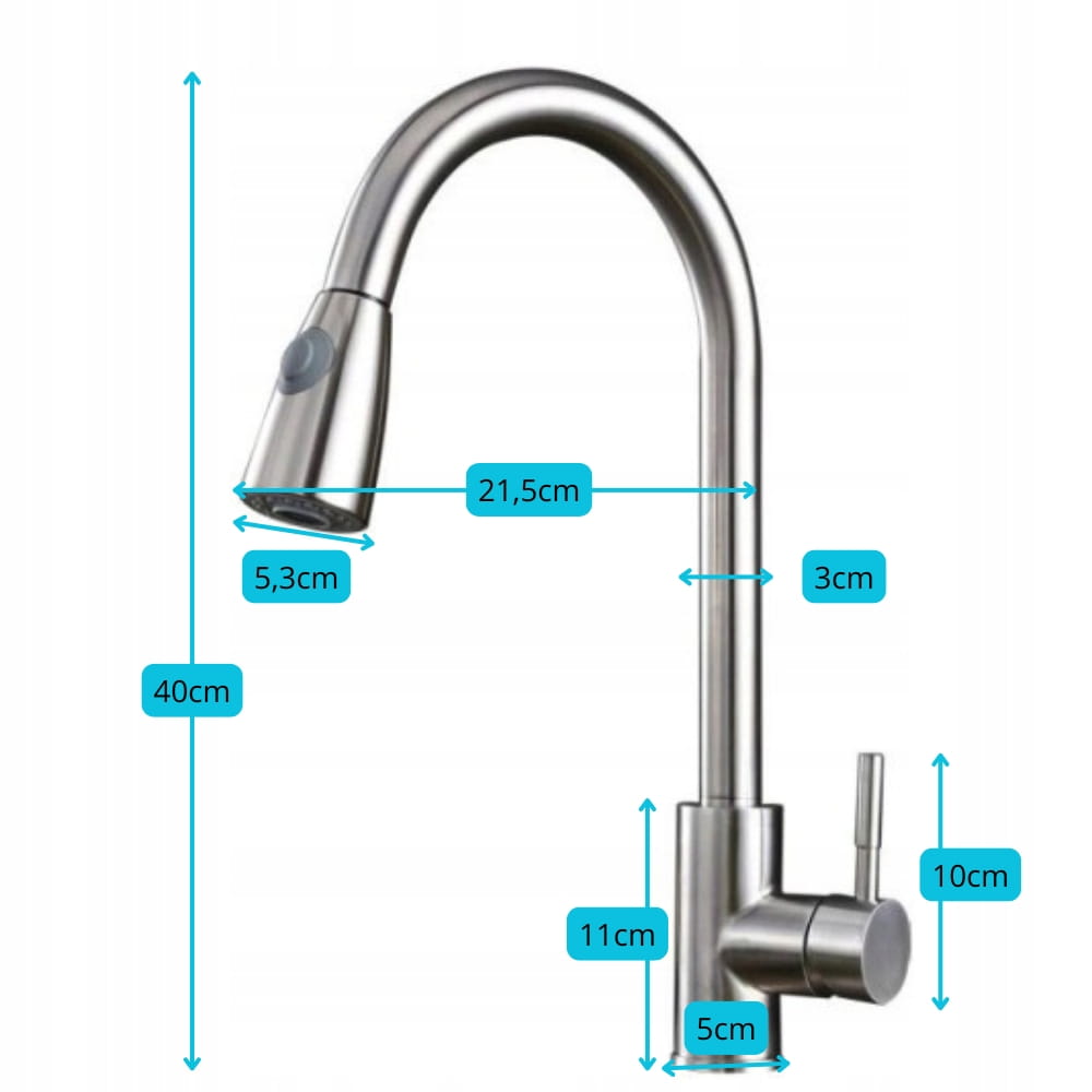 ✳️BATERIA KUCHENNA WYCIĄGANA WYLEWKA STOJĄCA INOX ELASTYCZNA RUCHOMA SREBRNA✳️