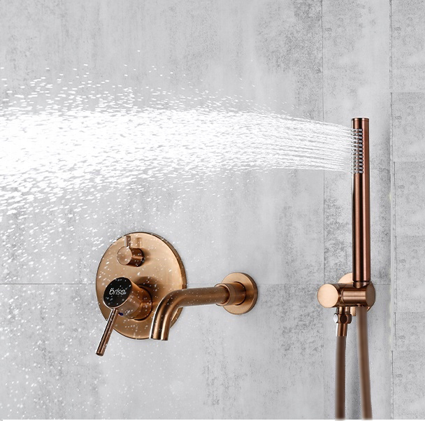 Bateria wannowa Briso ROSA łączy elegancję różowego złota z nowoczesną technologią, zapewniając nie tylko estetyczny wygląd, ale także niezawodność i komfort. Dzięki podtynkowemu montażowi zyskujesz przestronność i porządek w łazience, bez widocznych elementów. Bateria to świetne rozwiązanie do nowoczesnych wnętrz, które cenią zarówno design, jak i funkcjonalność.