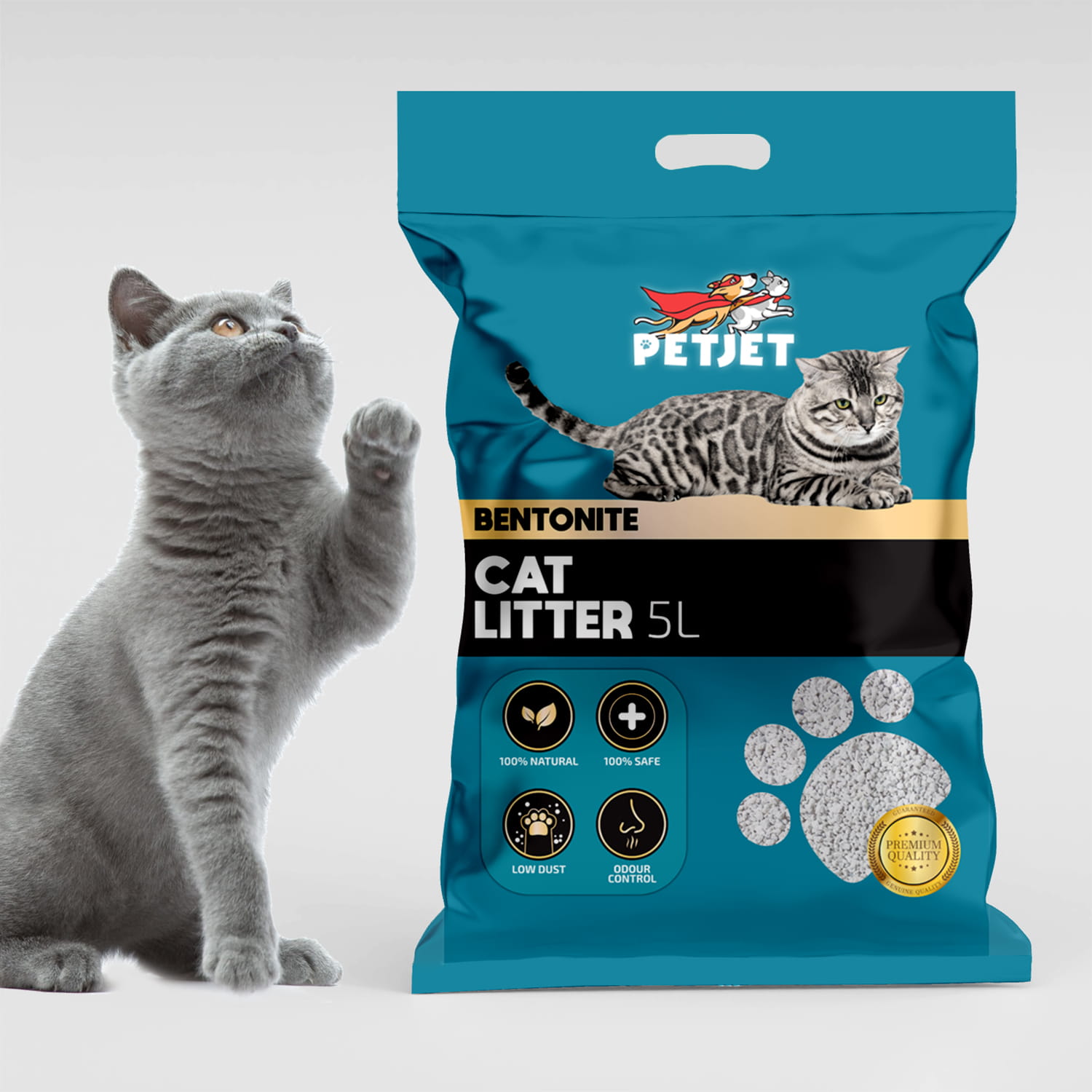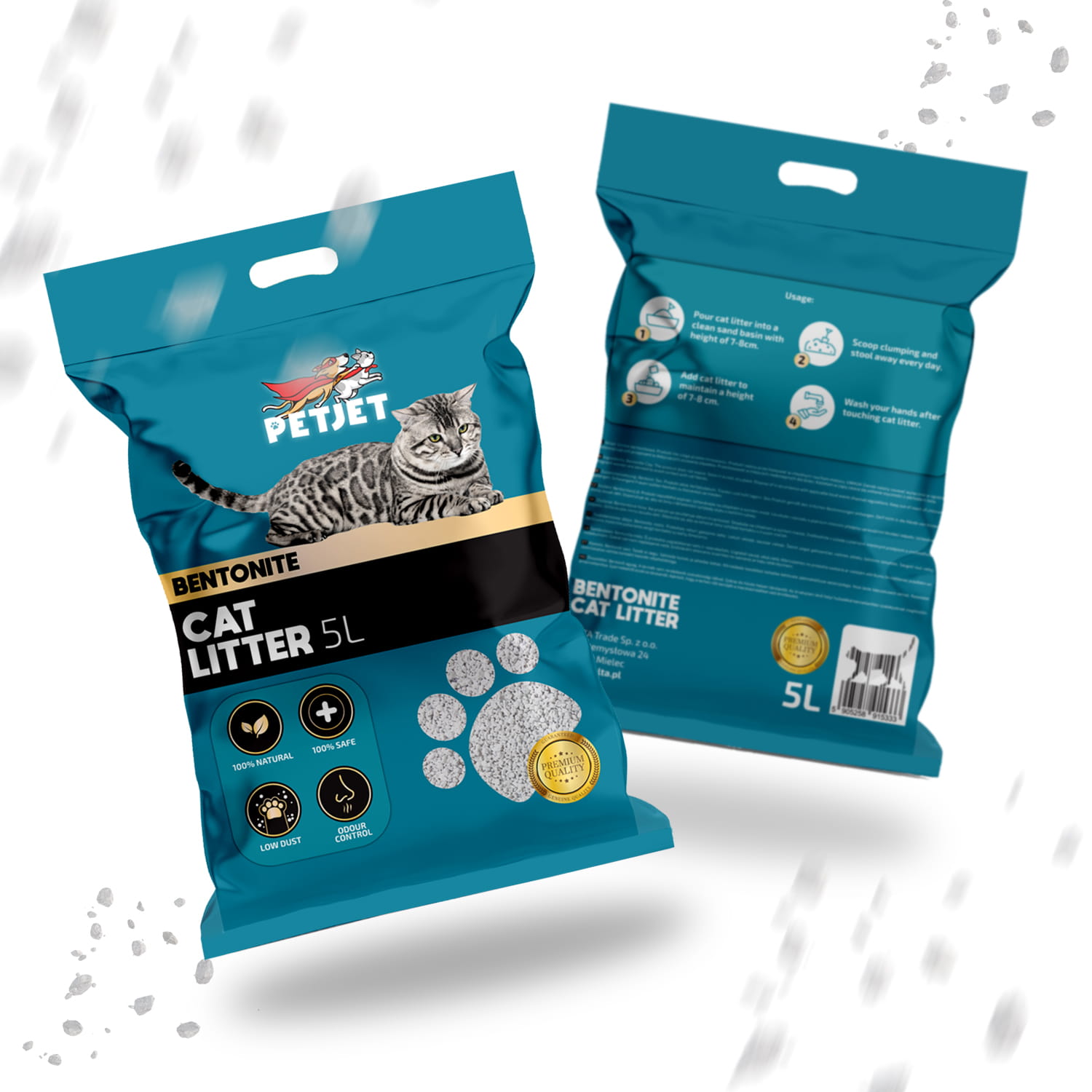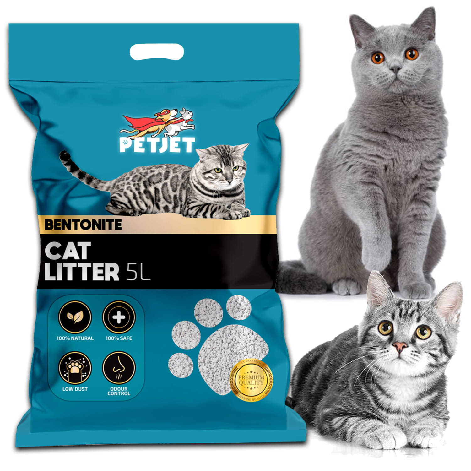 ✨ 100% bezpieczny, nietoksyczny dla kotów i ludzi — żwirek PetJet nie zawiera szkodliwych substancji chemicznych.