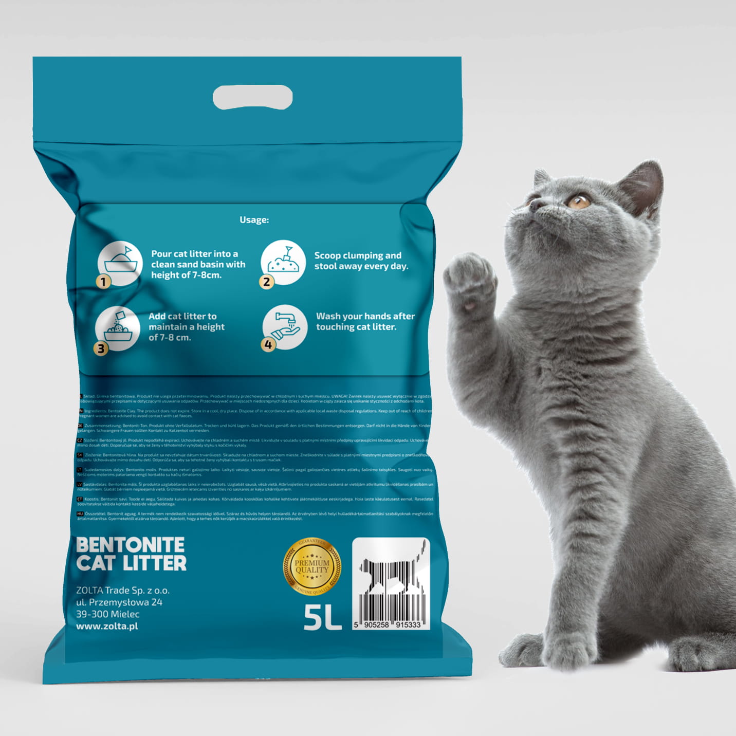 Bentonitowy żwirek do kuwety dla kota 5 litrów