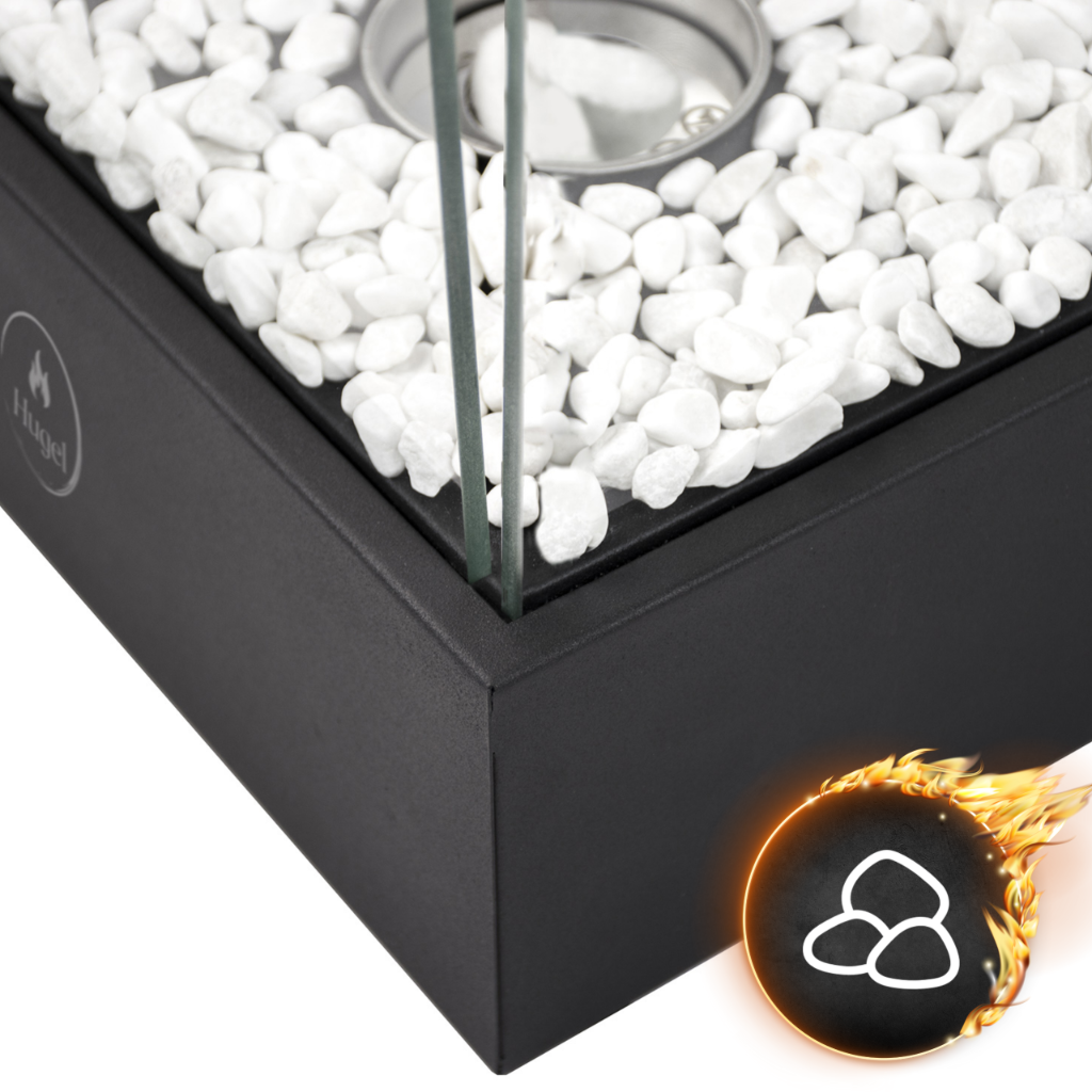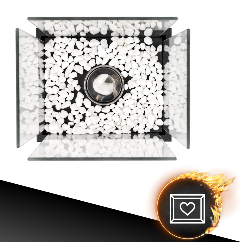 Biokominek posiada wokół paleniska miejsce do ułożenia kamieni dekoracyjnych, które są dołączone do zestawu! Taki dodatkowy element dekoracyjny sprawi, że Twój kominek będzie wyglądał jeszcze bardziej efektownie.