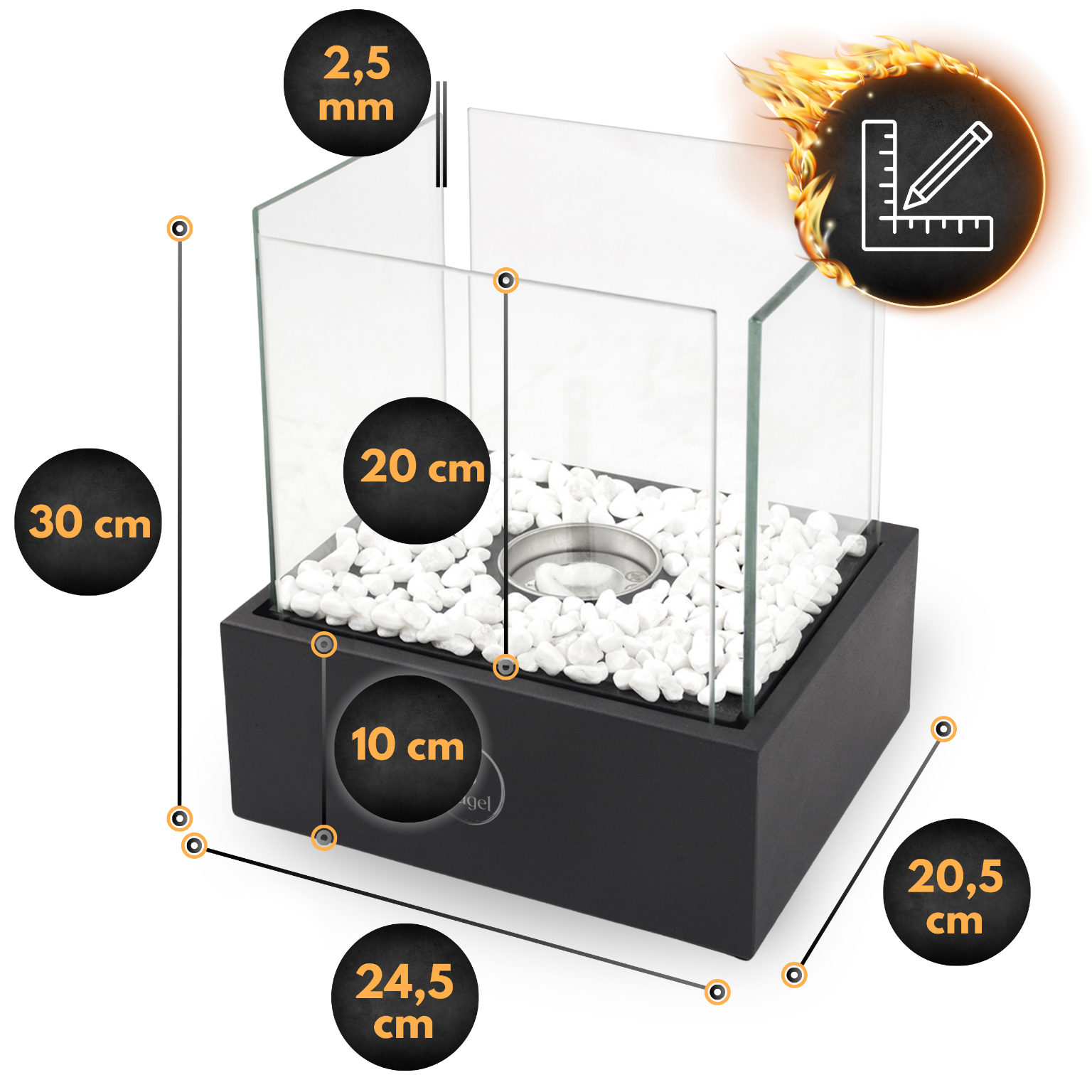 - wymiary biokominka: 30 cm × 24,5 cm x 20,5 cm