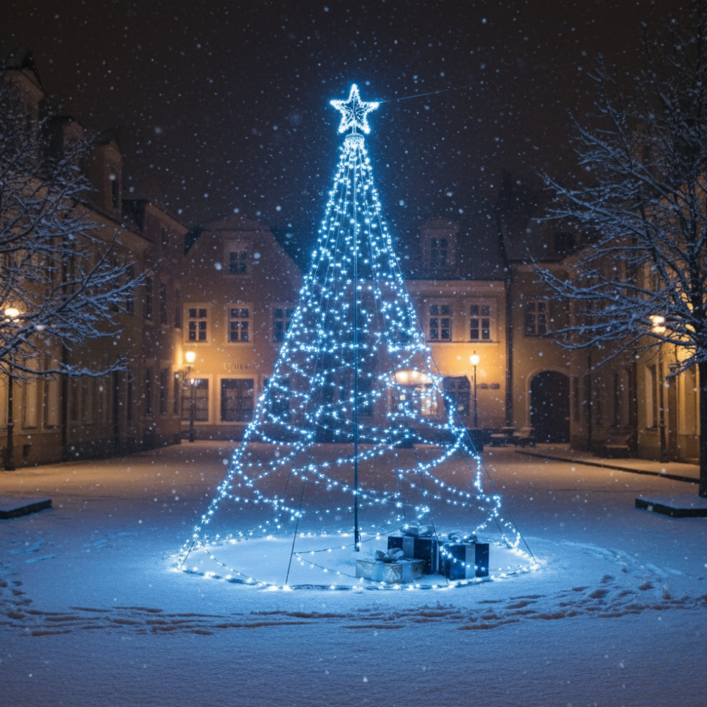 Ta niezwykła choinka, w całości wykonana z 200 lampek LED, nie tylko zachwyci domowników, ale także każdego przechodnia! Po zmroku staje się prawdziwą ozdobą otoczenia, tworząc niepowtarzalny klimat. To nie jest zwykła choinka, a świąteczna gwiazda Twojego ogrodu!