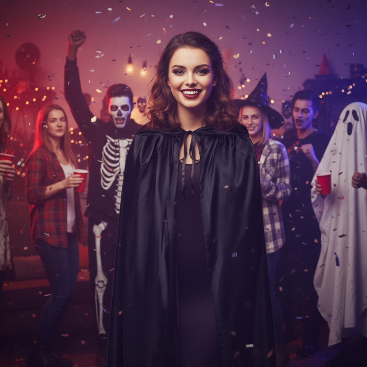 Nasza peleryna z kapturem to nie tylko dodatek na Halloween – to uniwersalny element przebrania na wiele okazji. Stwórz niepowtarzalną stylizację i wciel się w swoją ulubioną postać!