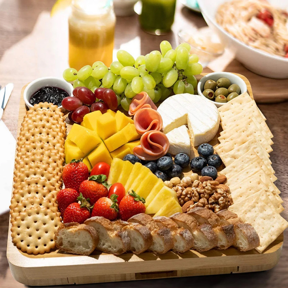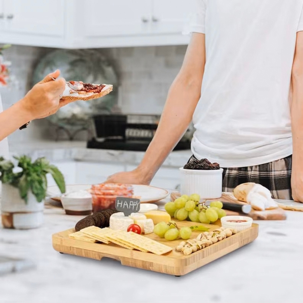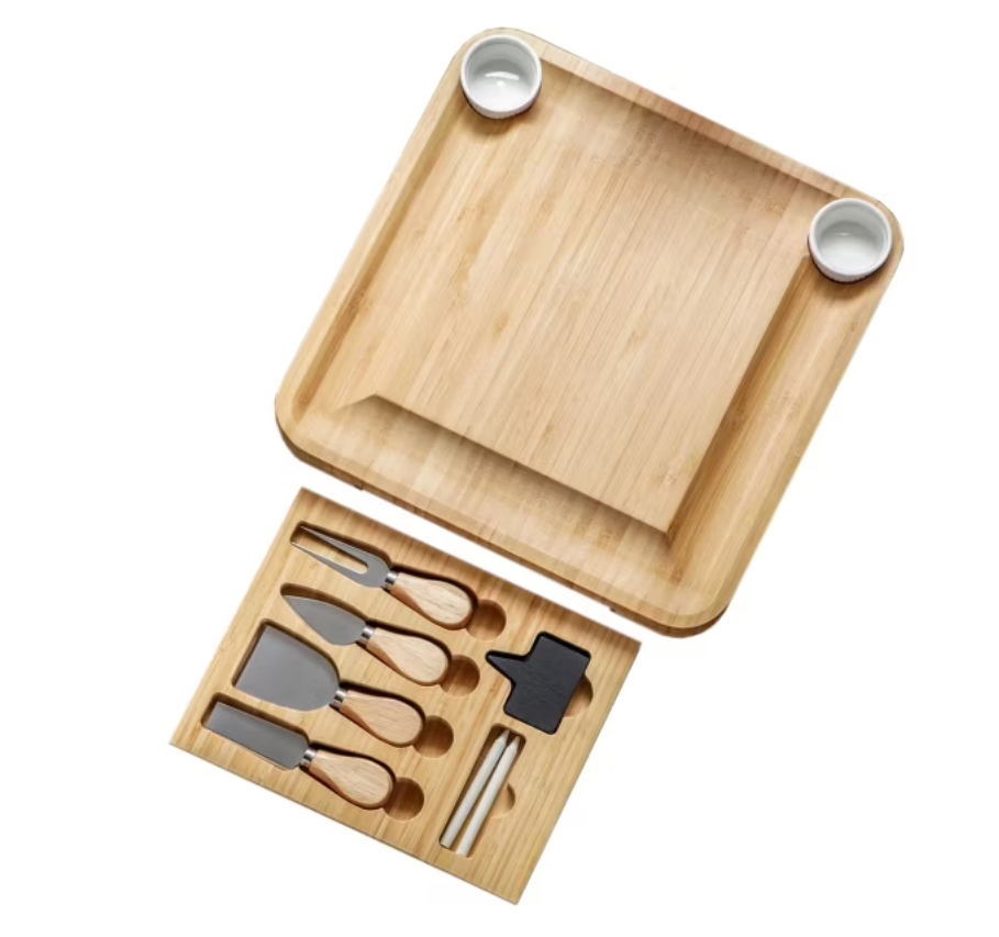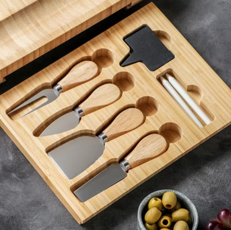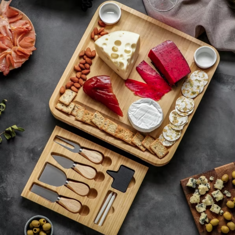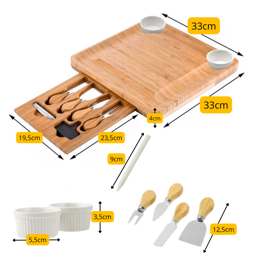 Bambusowa deska z zestawem noży będzie idealnym prezentem z okazji rocznicy, urodzin lub świąt. Świetnie sprawdzi się przy wszystkich rodzajach przekąsek, również tych na słodko!