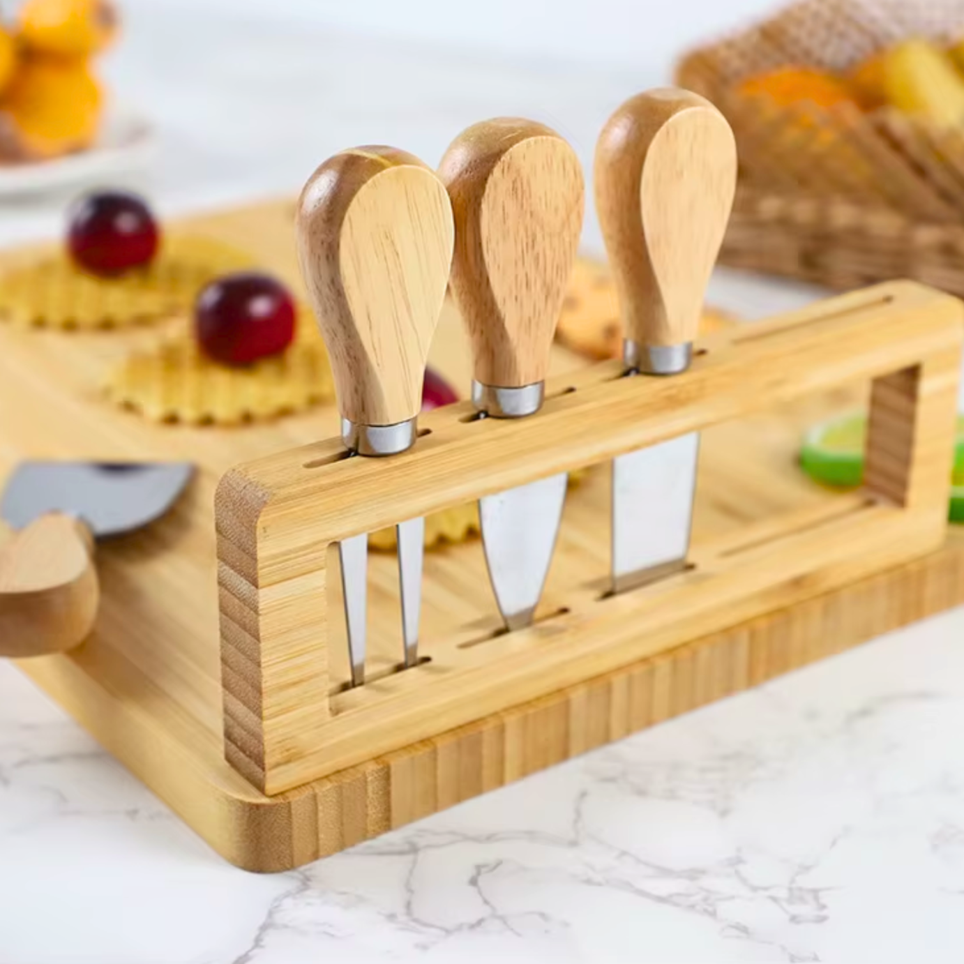 Bambusowa deska z zestawem noży będzie idealnym prezentem z okazji rocznicy, urodzin lub świąt. Świetnie sprawdzi się przy wszystkich rodzajach przekąsek, również tych na słodko!