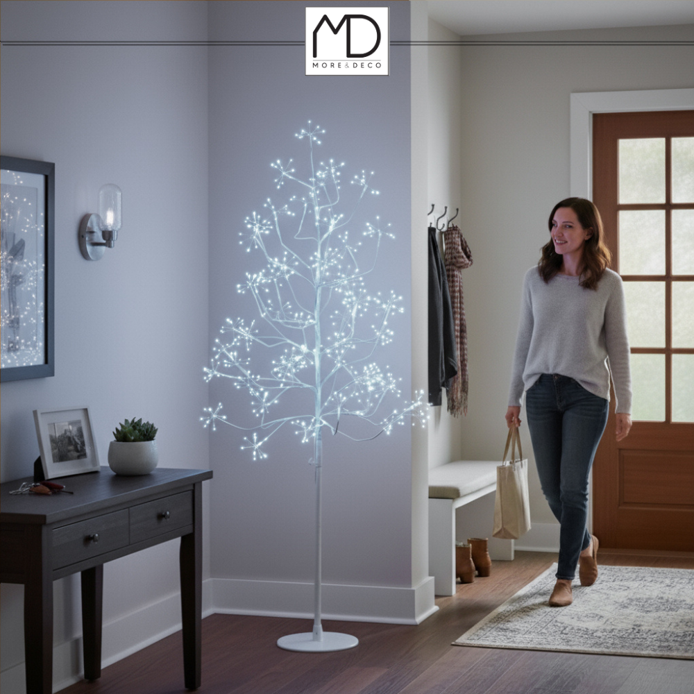 Drzewo wykonane jest z dbałością o szczegóły i posiada luksusowy i niepowtarzalny wygląd, przez co wnętrza, otrzymają niepowtarzalny świąteczny klimat.