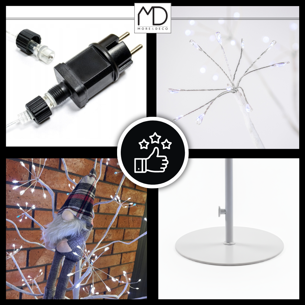 Drzewko posiada zabezpieczenie przed wilgocią IP44 oraz certyfikat CE, ROHS i GS (Geprüfte Sicherheit) jako potwierdzenie spełnienia wszystkich standardów bezpieczeństwa.