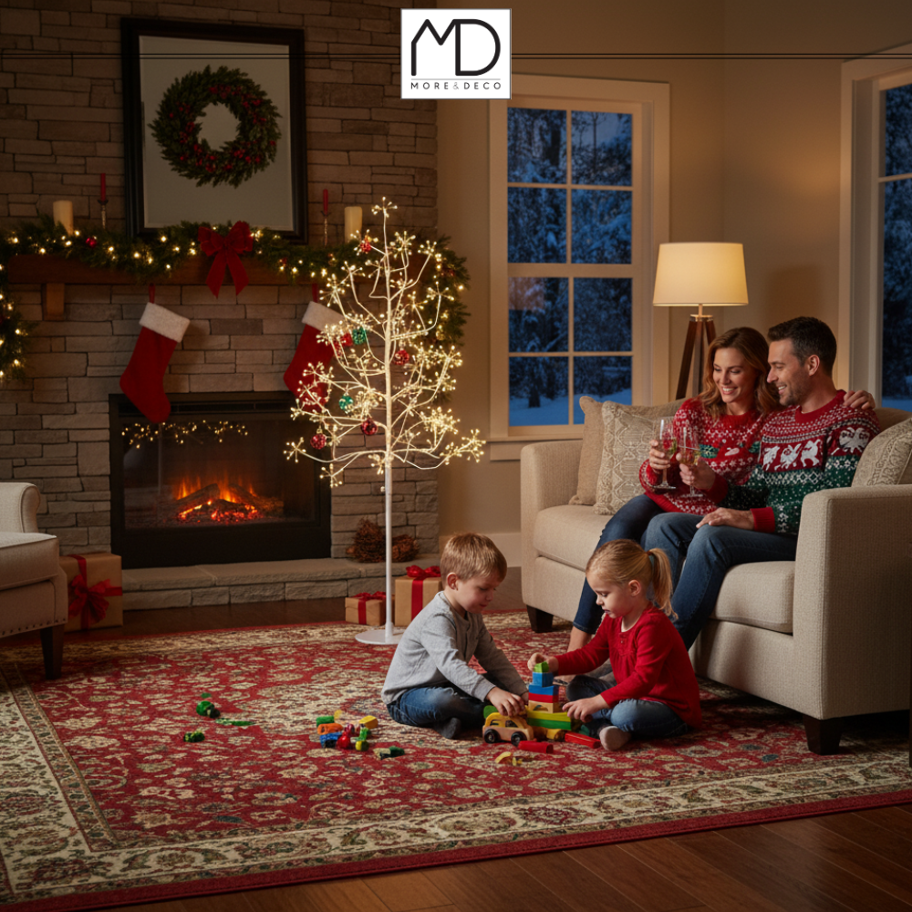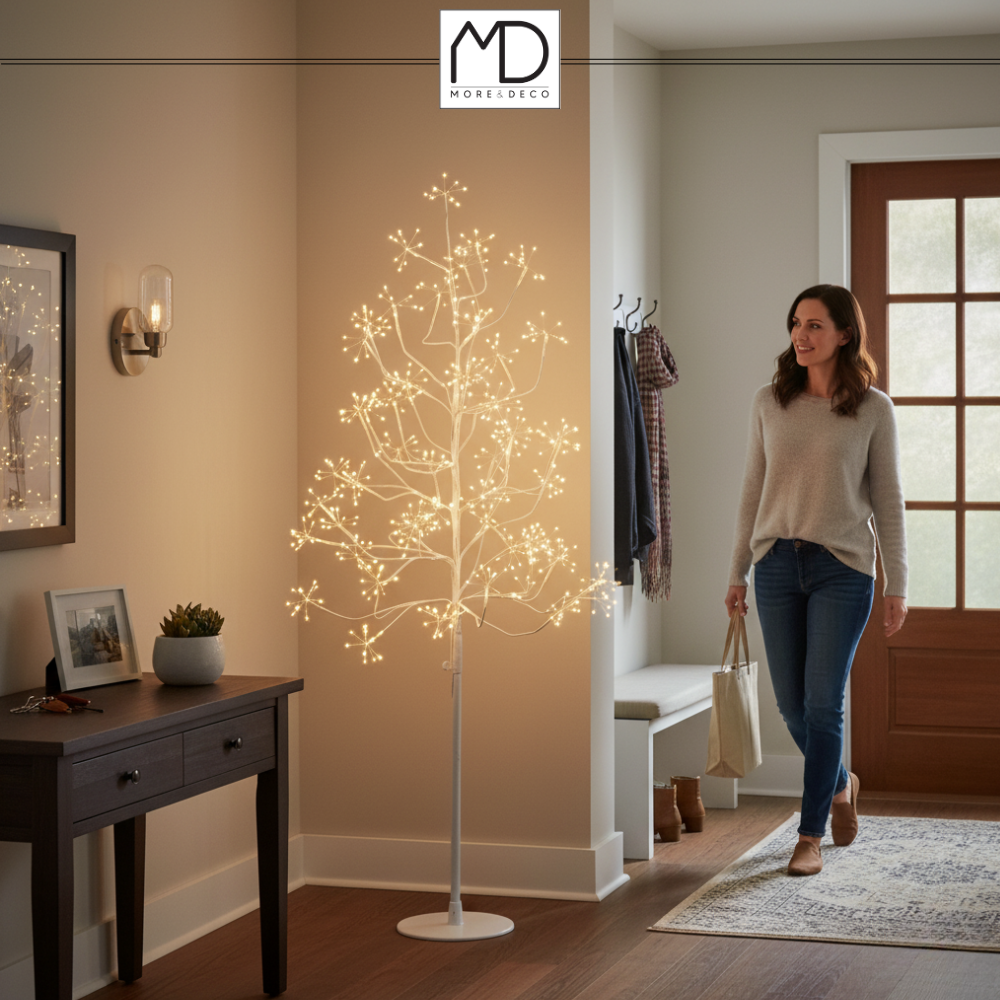 Drzewo wykonane jest z dbałością o szczegóły i posiada luksusowy i niepowtarzalny wygląd, przez co wnętrza, otrzymają niepowtarzalny świąteczny klimat.