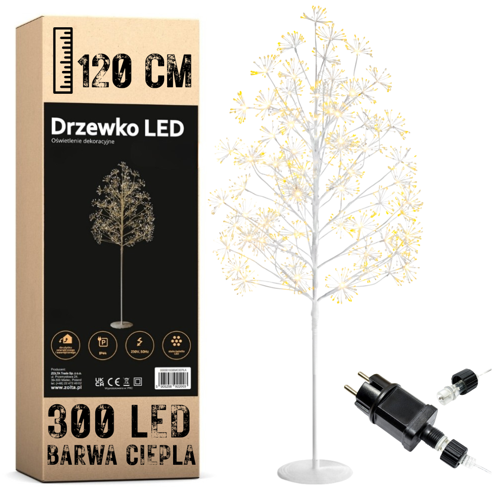 Drzewko 120cm 300 LED świąteczne eko dekoracja Boże Narodzenie ciepły biały