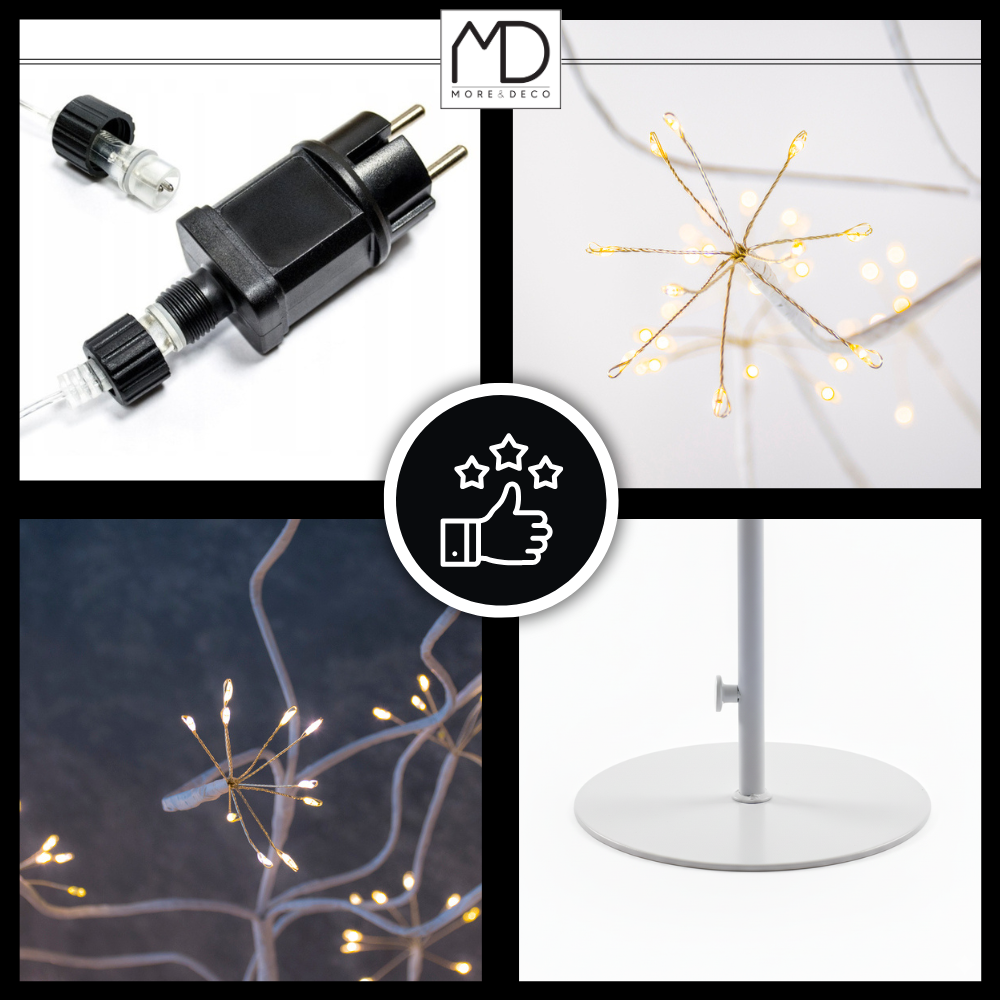 Drzewko posiada zabezpieczenie przed wilgocią IP44 oraz certyfikat CE, ROHS i GS (Geprüfte Sicherheit) jako potwierdzenie spełnienia wszystkich standardów bezpieczeństwa.