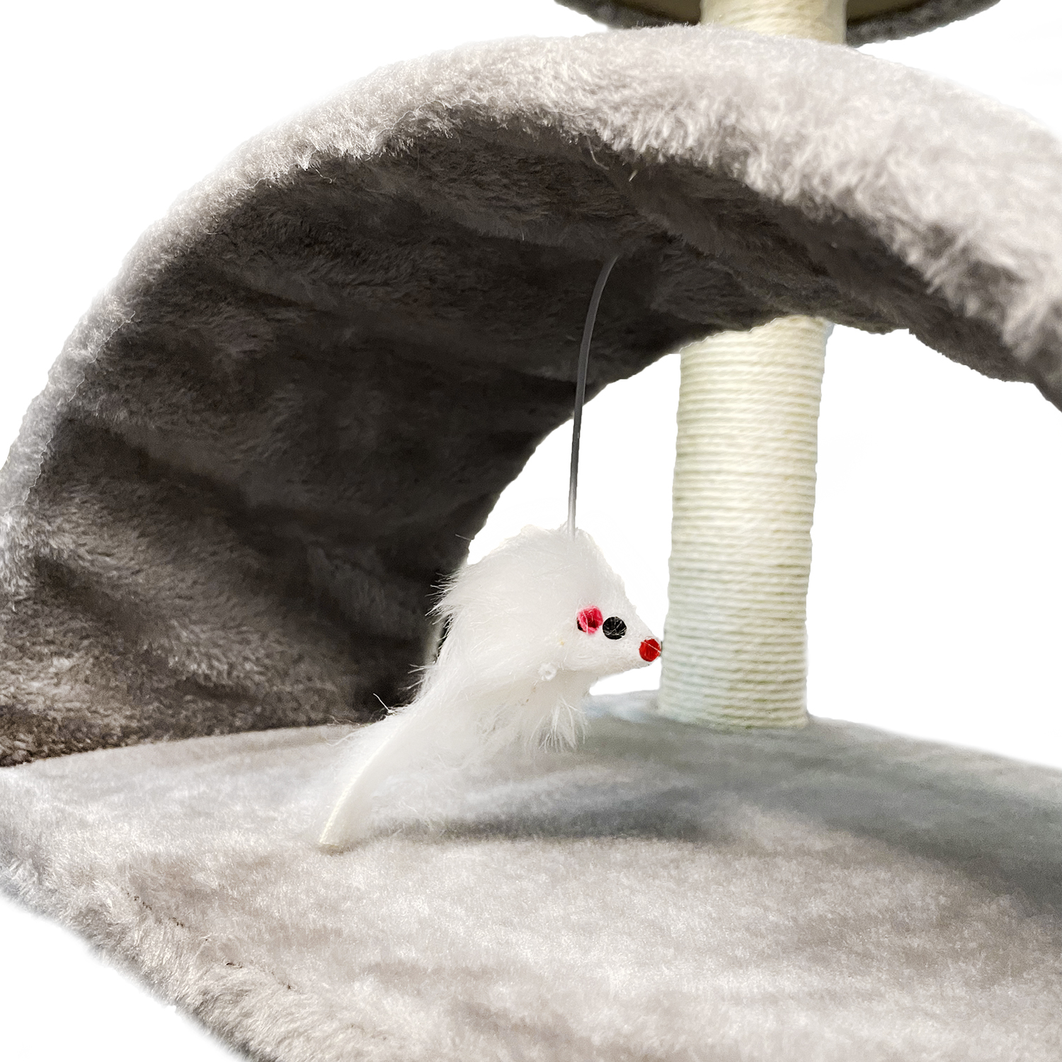 Do platformy drapaka została zamontowana zabawka-piłka na gumce i dzwoneczek, a w tunelu zabawka-myszka, które pozwolą pupilowi zaspokoić jego instynkt łowcy.