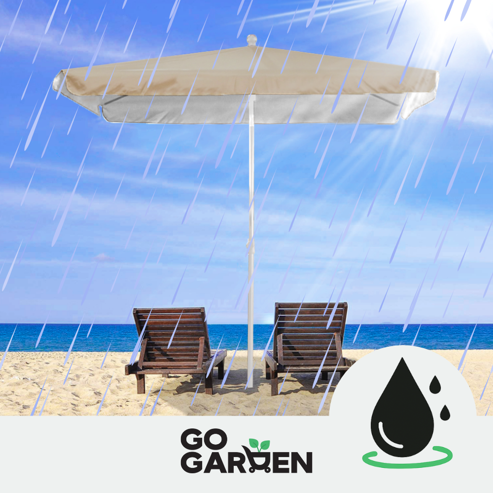 Model SANDOS został zaprojektowany z myślą o trwałości. Gruby, metalowy drążek malowany proszkowo oraz metalowe szprychy gwarantują odporność na wiatr i uszkodzenia. Wzmocniona tkanina poliestrowa wytrzyma wiele sezonów intensywnego użytkowania.