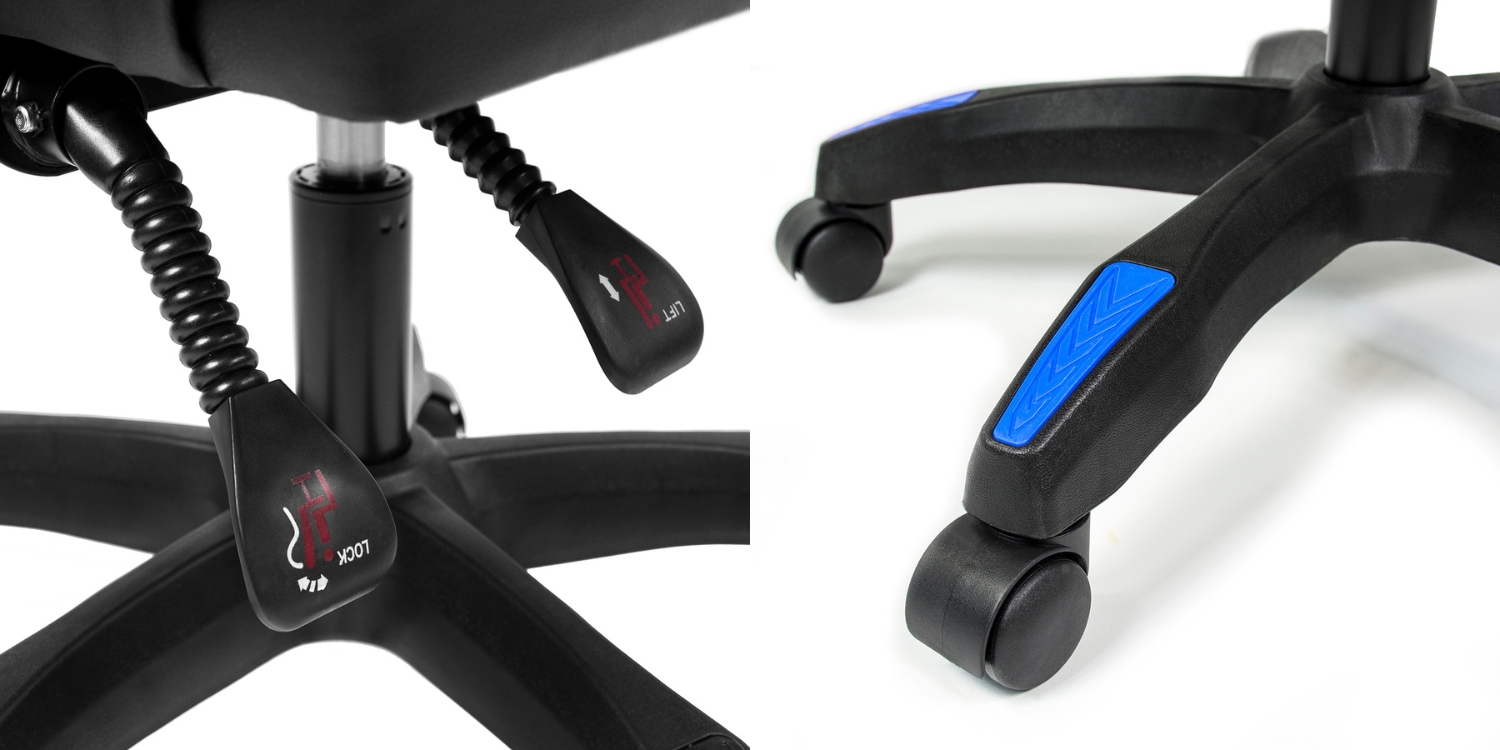 Podłokietniki fotela TOCHI HERO zostały wyposażone w warstwę miękkiej pianki, co zapewnia optymalne podparcie dla ramion i komfortowy wypoczynek dłoni nawet przy wielogodzinnym użytkowaniu. Pięcioramienna, stabilna podstawa fotela wykonana z trwałego materiału zapewnia pełne bezpieczeństwo i stabilność w każdej pozycji, a kółka z wysokiej jakości tworzywa pozwalają na łatwe przemieszczanie bez ryzyka zarysowań.