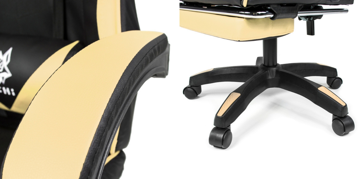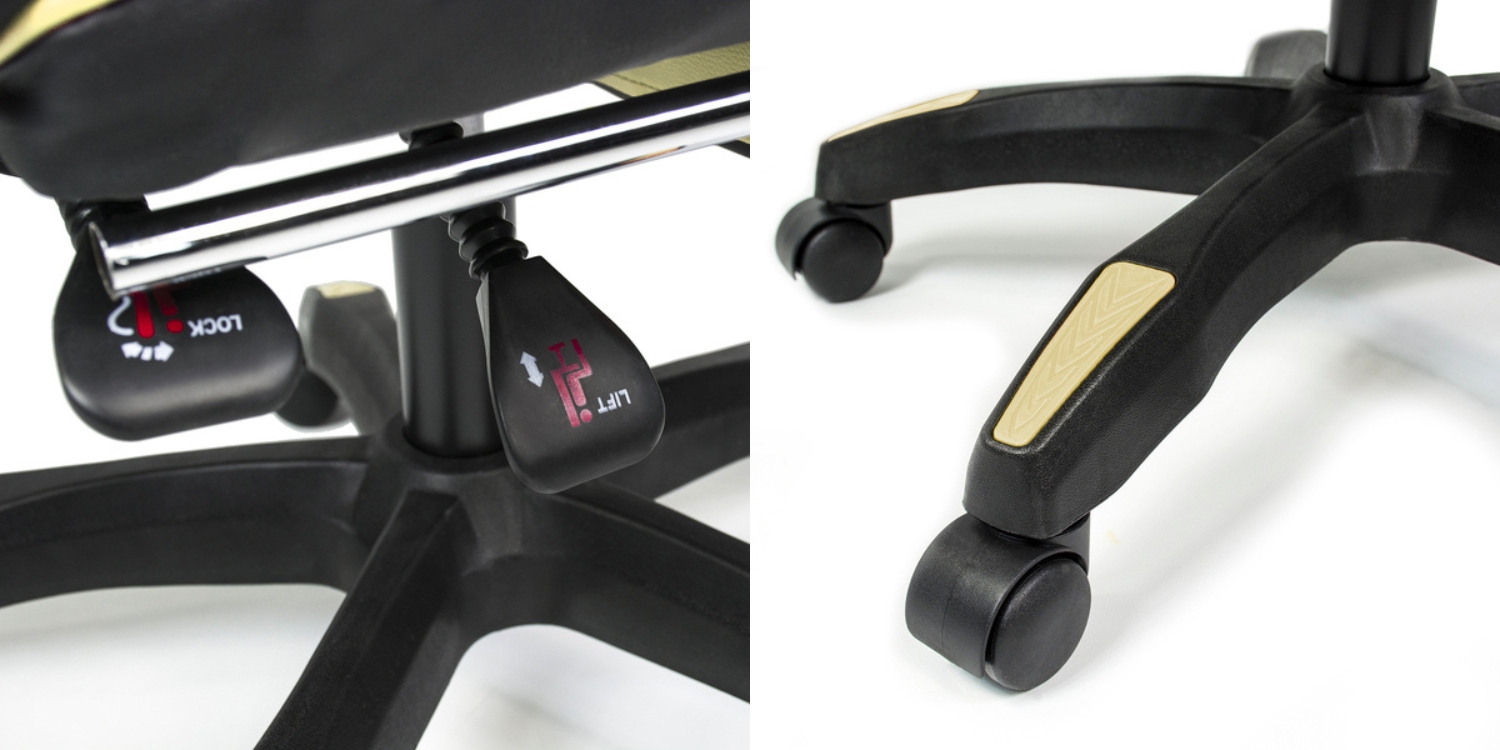 Podłokietniki fotela TOCHI LEGENDARY zostały wyposażone w warstwę miękkiej pianki, co zapewnia optymalne podparcie dla ramion i komfortowy wypoczynek dłoni nawet przy wielogodzinnym użytkowaniu. Pięcioramienna, stabilna podstawa fotela wykonana z trwałego materiału zapewnia pełne bezpieczeństwo i stabilność w każdej pozycji, a kółka z wysokiej jakości tworzywa pozwalają na łatwe przemieszczanie bez ryzyka zarysowań.