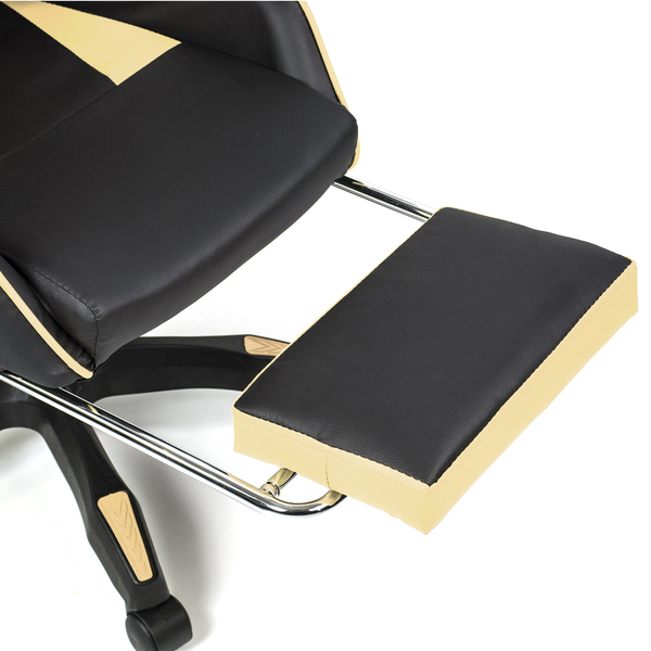 Fotel gamingowy z masażem i podnóżkiem LEGENDARY czarno-beżowy