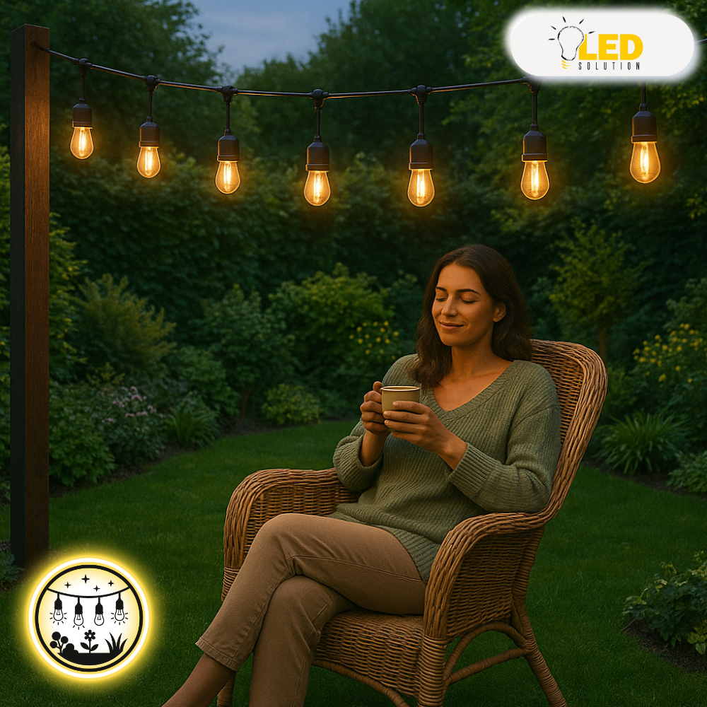 GIRLANDA OGRODOWA ŚWIETLNA 15M X 15 ŻARÓWEK E27 WODOODPORNA IP65 CAŁOROCZNA