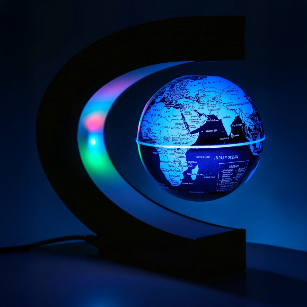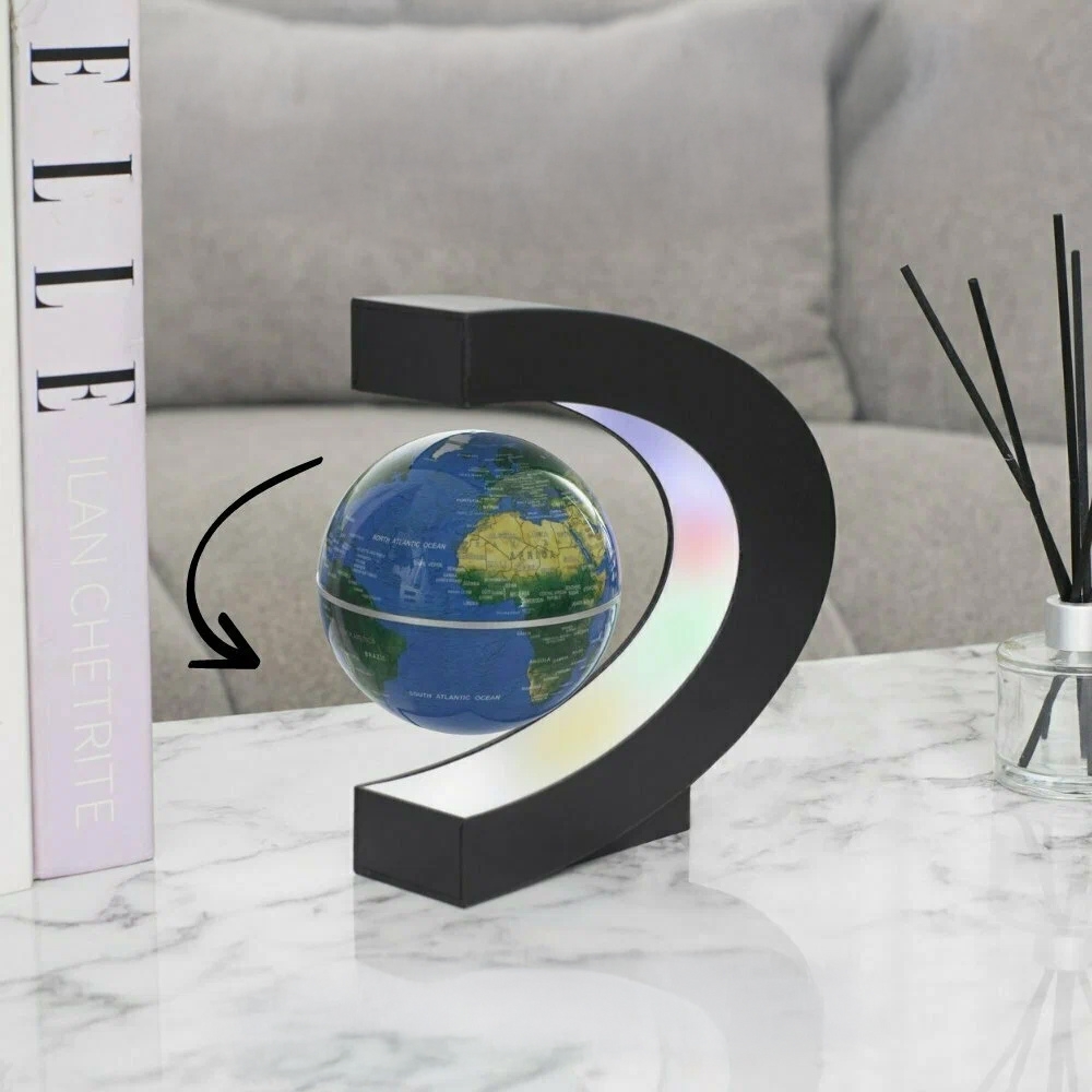 Lewitujący globus to innowacyjny gadżet, który wykorzystuje pole elektromagnetyczne, aby kula ziemska mogła lewitować w powietrzu, nie dotykając przy tym stojaka! Jest to odwzorowanie prawdziwej Ziemi, która krąży w przestrzeni po orbicie.