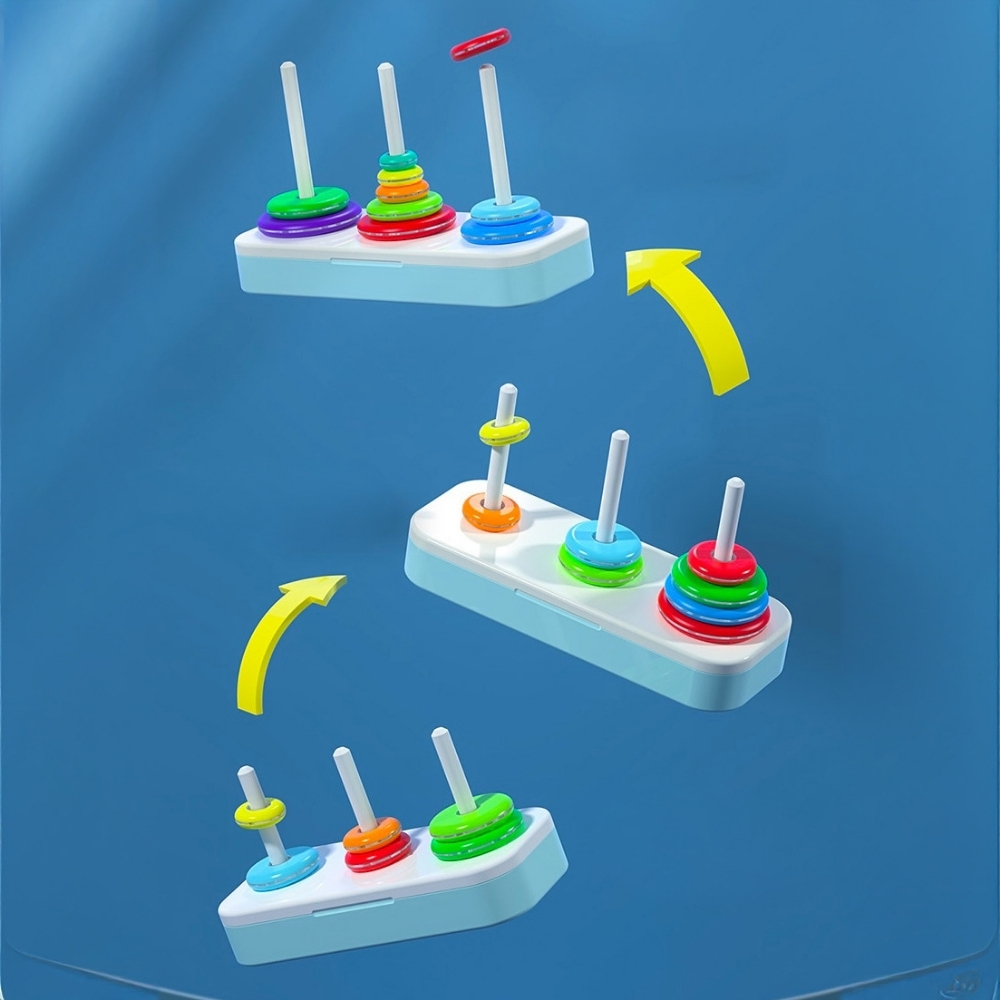 - Twoim celem jest ułożenie wszystkich pierścieni na przeciwległym drążku w odpowiedniej kolejności.