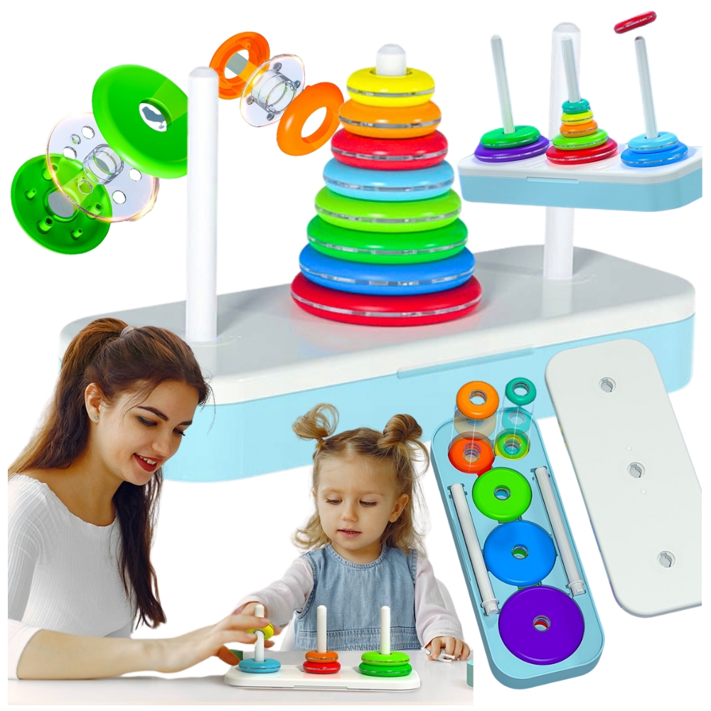 ✨ GRA UKŁADANKA LOGICZNA EDUKACYJNA WIEŻA HANOI SORTER PUDEŁKO ZESTAW 8 KÓŁEK ✨