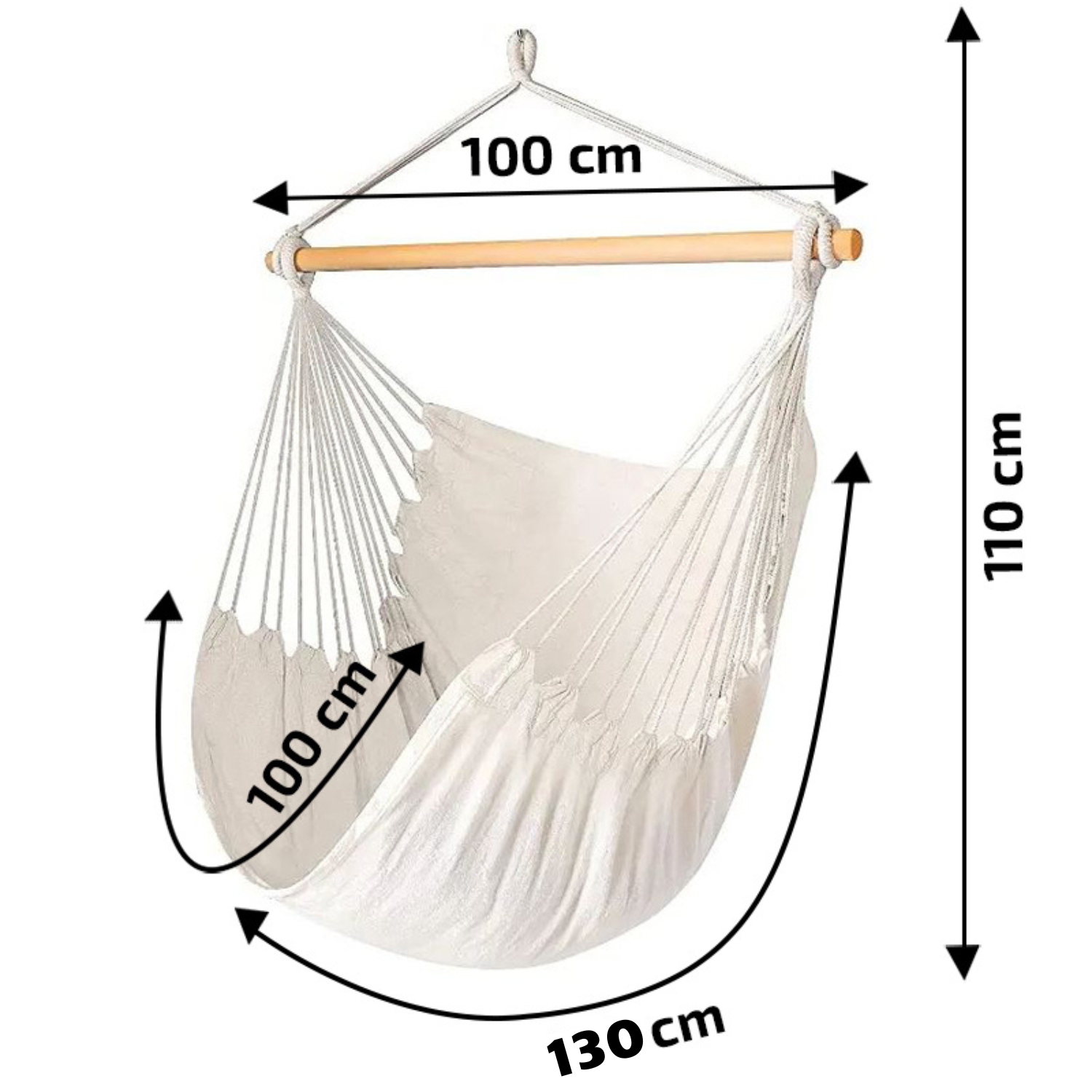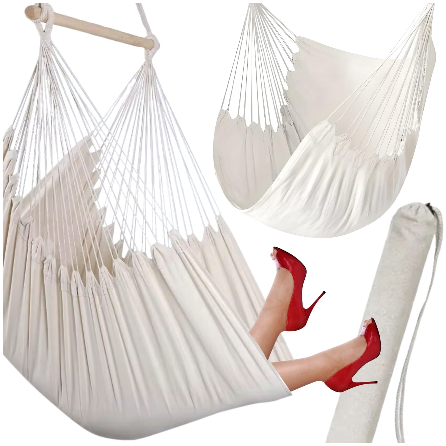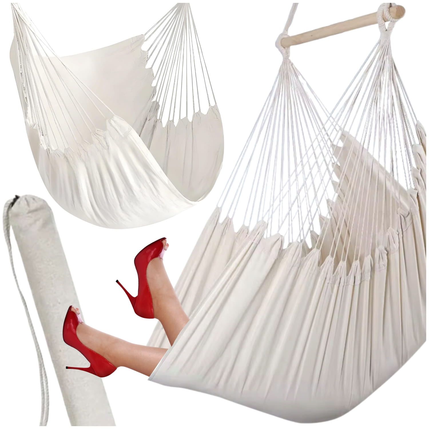 ⏩ DUŻY FOTEL WISZĄCY HAMAK OGRODOWY KRZESŁO BRAZYLIJSKIE BEŻOWE HUŚTAWKA BOHO + POKROWIEC