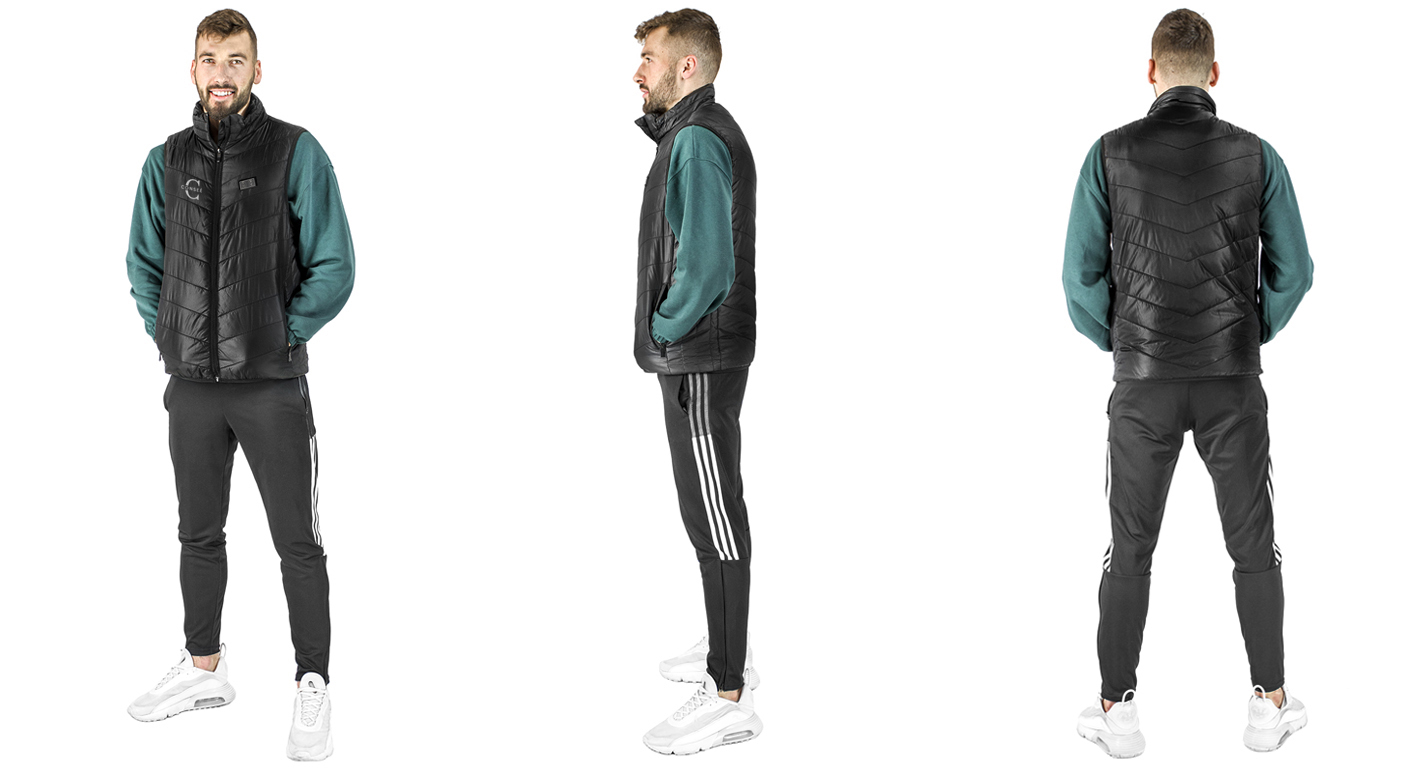 Optymalne rozmieszczenie wkładów grzejących sprawia, że kamizelka zapewnia przyjemnie ogrzanie całego tułowia: