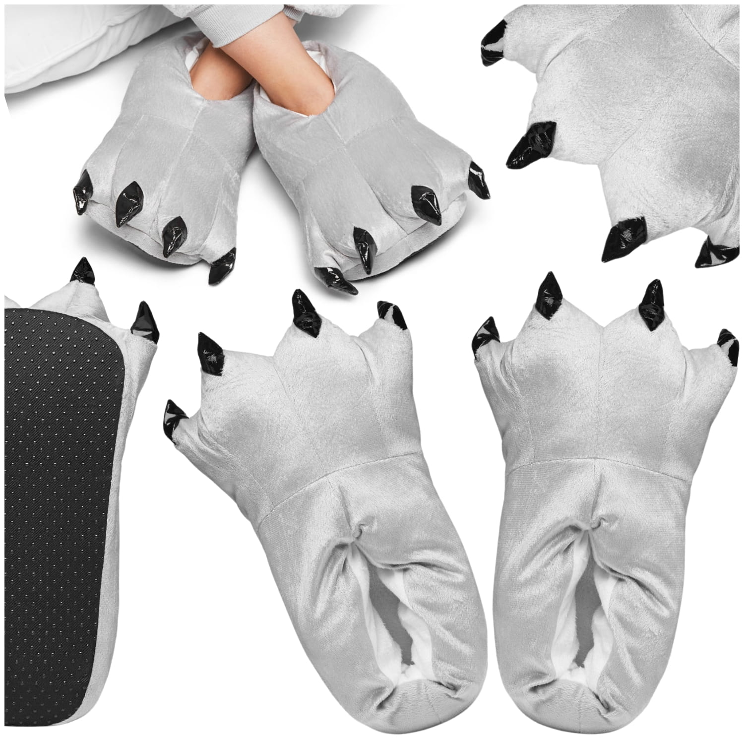 Kapcie bambosze z pazurami łapy - szare