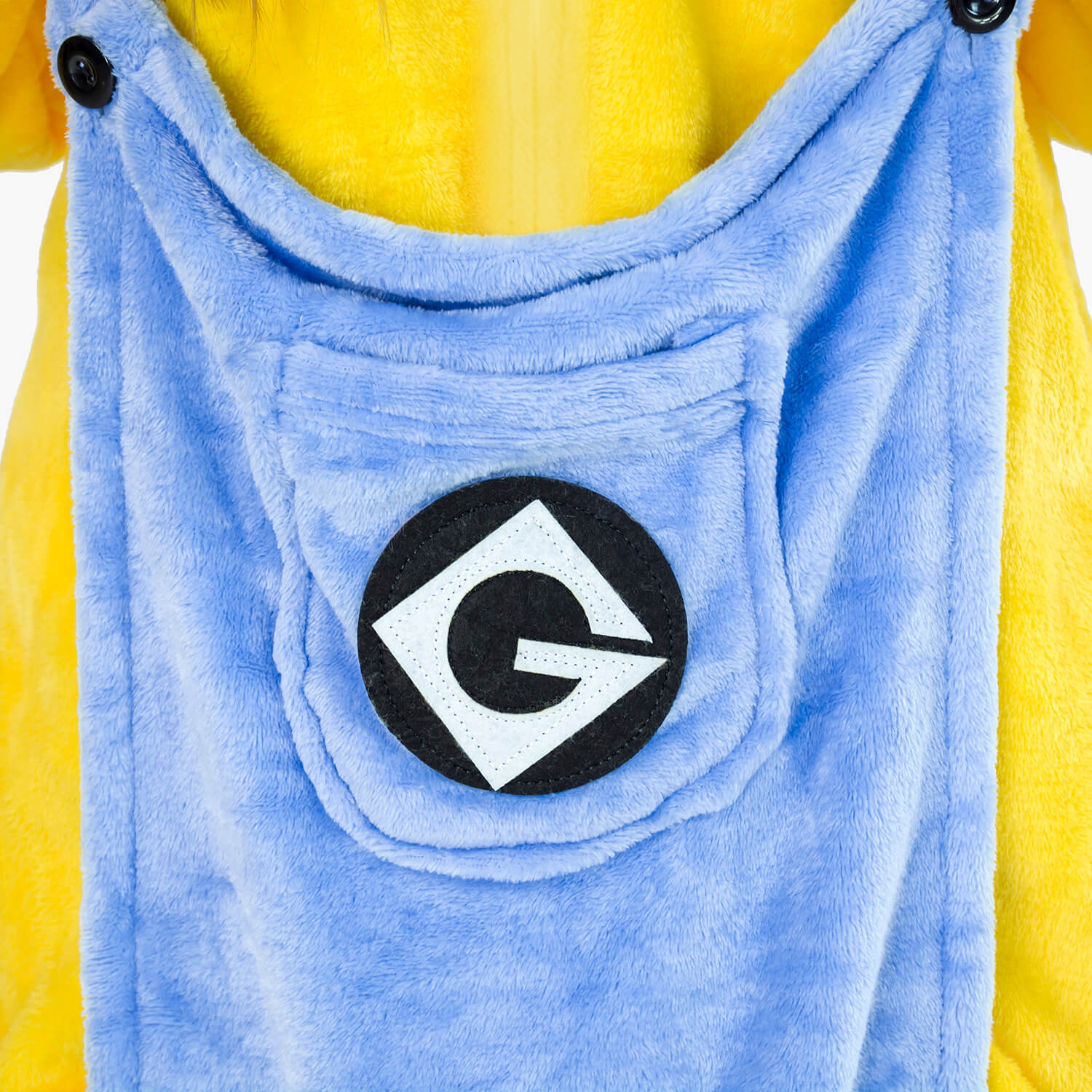 Wejdź w świat zabawy i wygody dzięki uroczemu kombinezonowi! Miękki, puszysty materiał zapewni Ci ciepło i komfort, dzięki czemu idealnie sprawdzi się podczas odpoczynku w domu, przebieranych imprez czy spotkań ze znajomymi. Kombinezon wyposażony jest w kaptur z dużymi oczami, charakterystycznymi goglami i uśmiechniętym pyszczkiem Minionka oraz praktyczne zapięcie, które ułatwia zakładanie. Minionek, znany z filmów „Jak ukraść księżyc” i „Minionki”, to wesoły, nieco roztrzepany pomocnik o złotym sercu, którego zabawny wygląd dodaje całości wyjątkowego uroku. To także świetny pomysł na prezent dla fanów animacji i oryginalnych rozwiązań. Dzięki starannemu wykończeniu i wysokiej jakości materiałowi kombinezon posłuży Ci przez długi czas. To połączenie radości, wygody i niepowtarzalnego stylu!