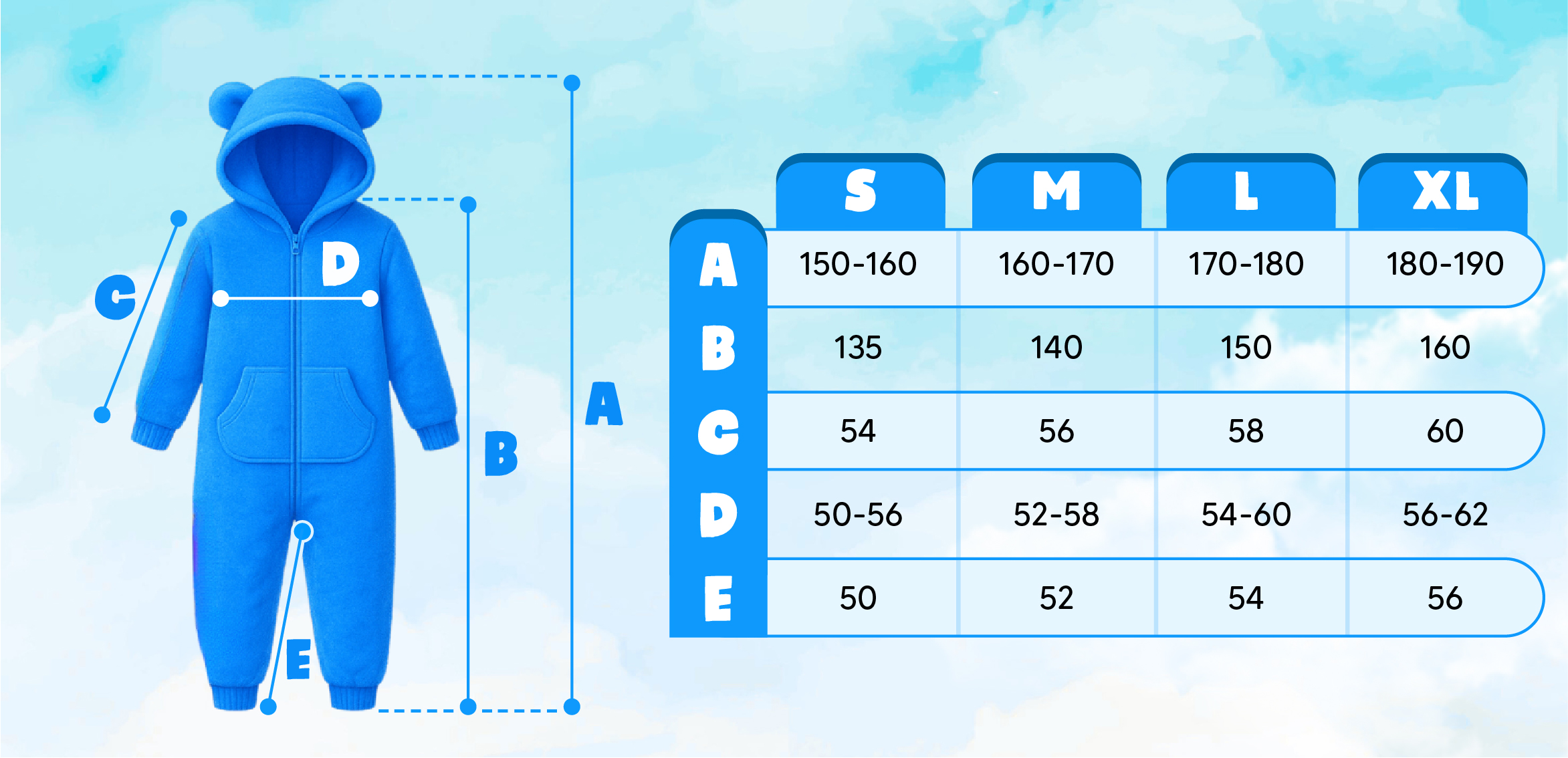 ❗️❗️ Przy wyborze kigurumi najważniejszy jest wzrost – luźny fason sprawia, że pasuje na każdą sylwetkę. Dzięki temu wystarczy dopasować długość do wzrostu, by cieszyć się pełnym komfortem i swobodą ruchów. ✨