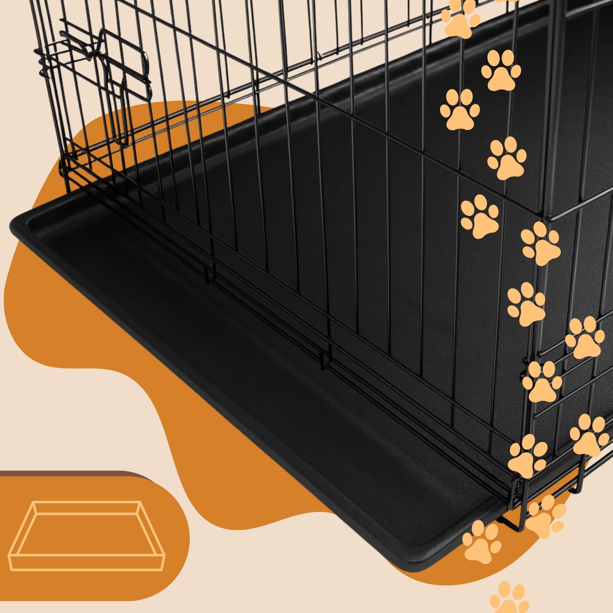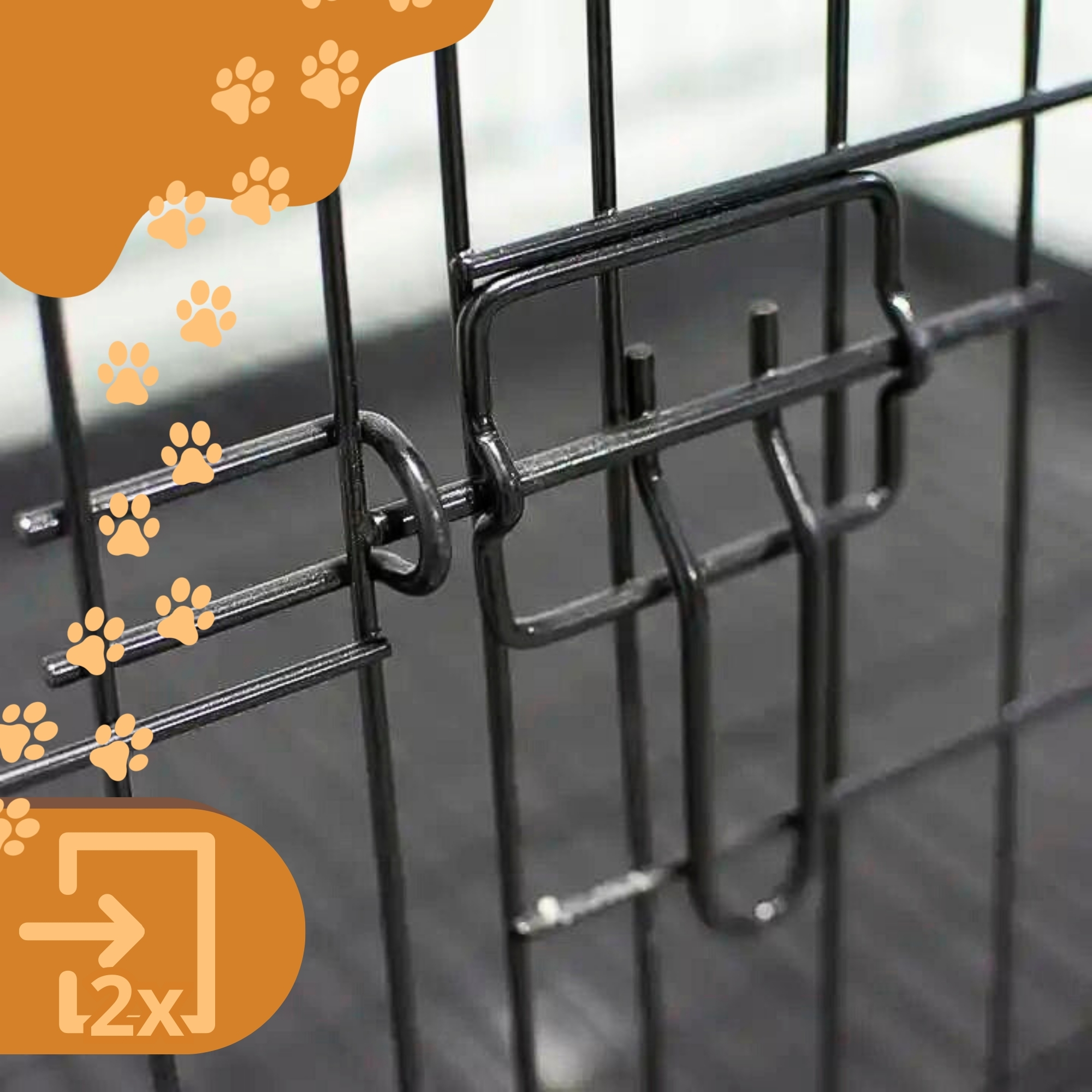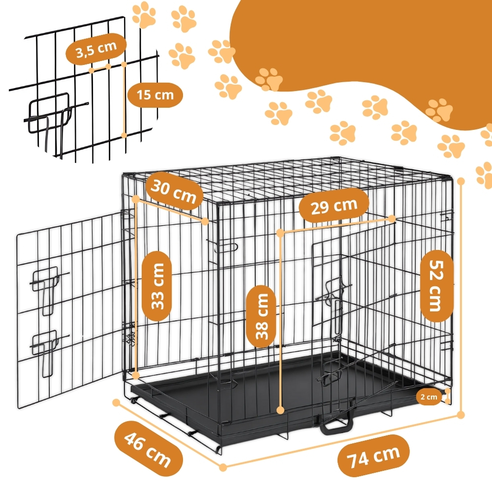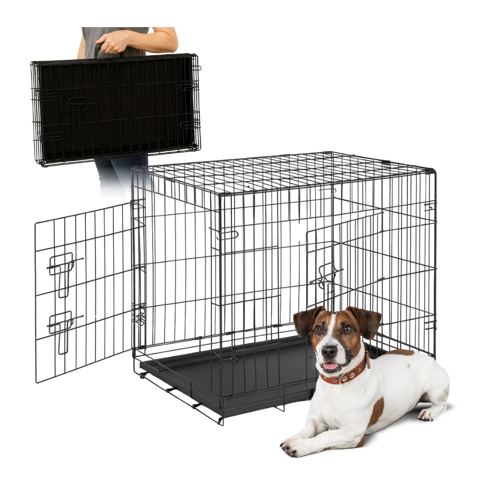 Klatka została wyposażona w dwa niezależne wejścia – po krótszym i dłuższym boku. Dzięki temu możesz ustawić ją dokładnie tak, jak Ci wygodnie – przy ścianie, w bagażniku samochodu czy w rogu pokoju.