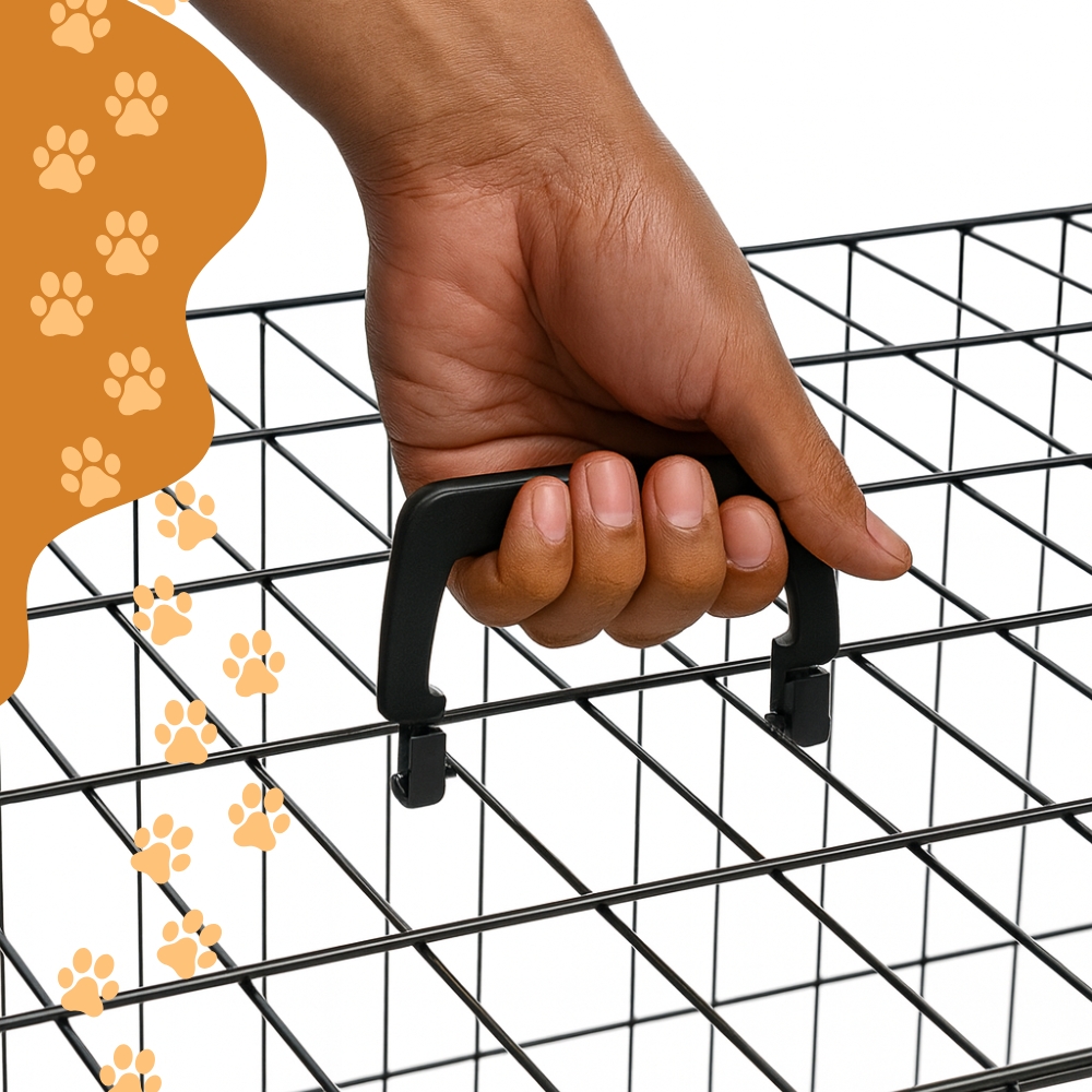 Rozkładanie i składanie klatki to kwestia sekund – wystarczy jeden ruch, aby była gotowa do użycia. Nie potrzebujesz żadnych narzędzi, dodatkowych części ani specjalnych umiejętności technicznych. Dzięki składanej konstrukcji klatka: