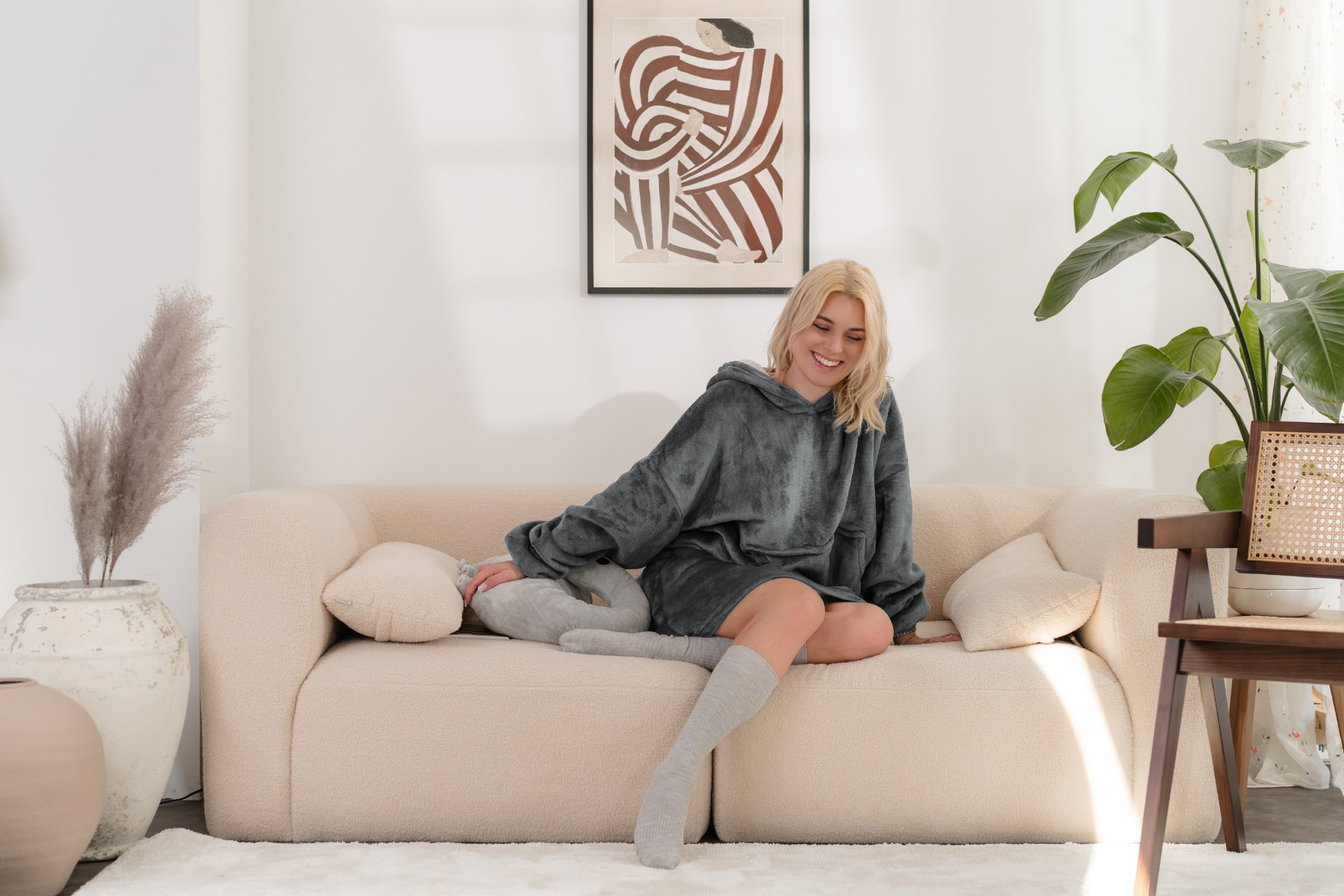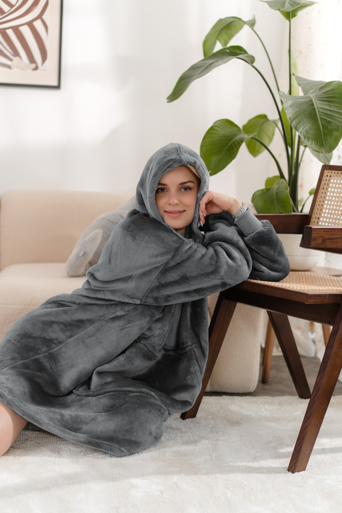 Koc bluza z kapturem kocobluza szara uniwersalna miękka gruba duża oversizel