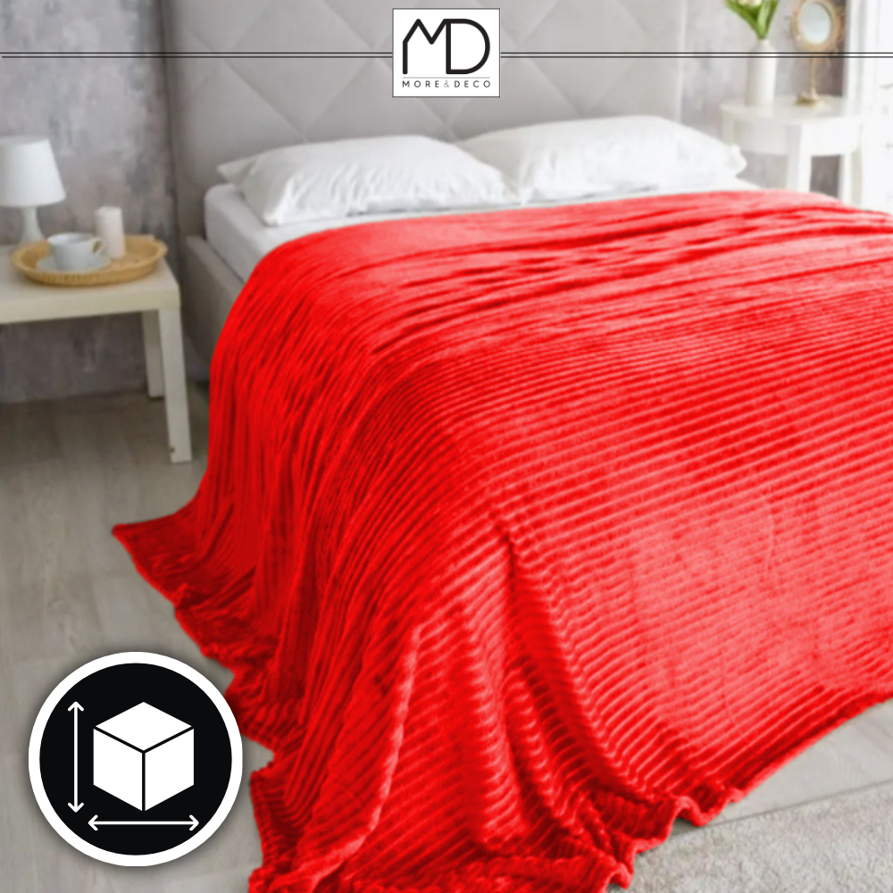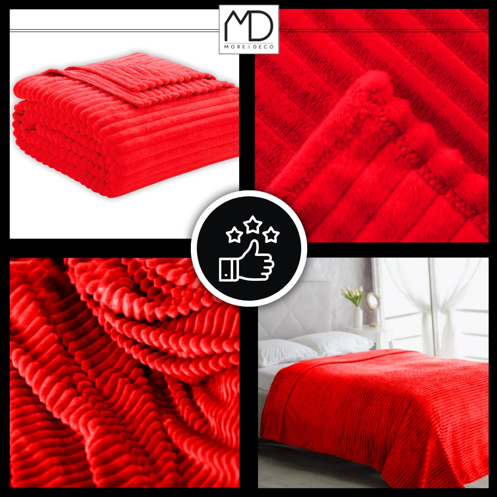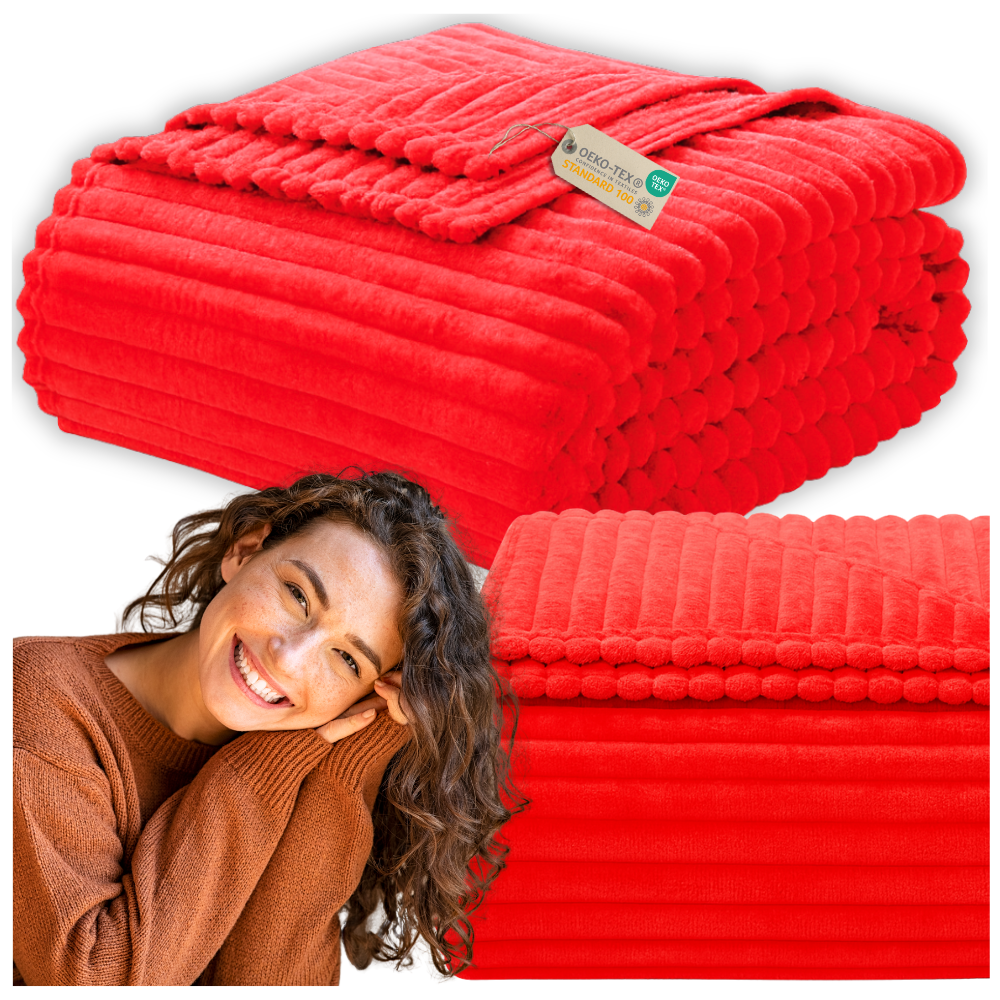 Koc czerwony 200x220cm wytłaczany paski łóżko narzuta duża stylowa ochrona