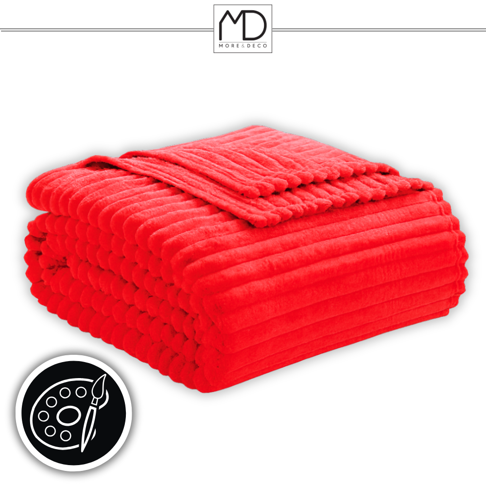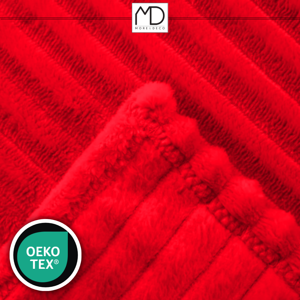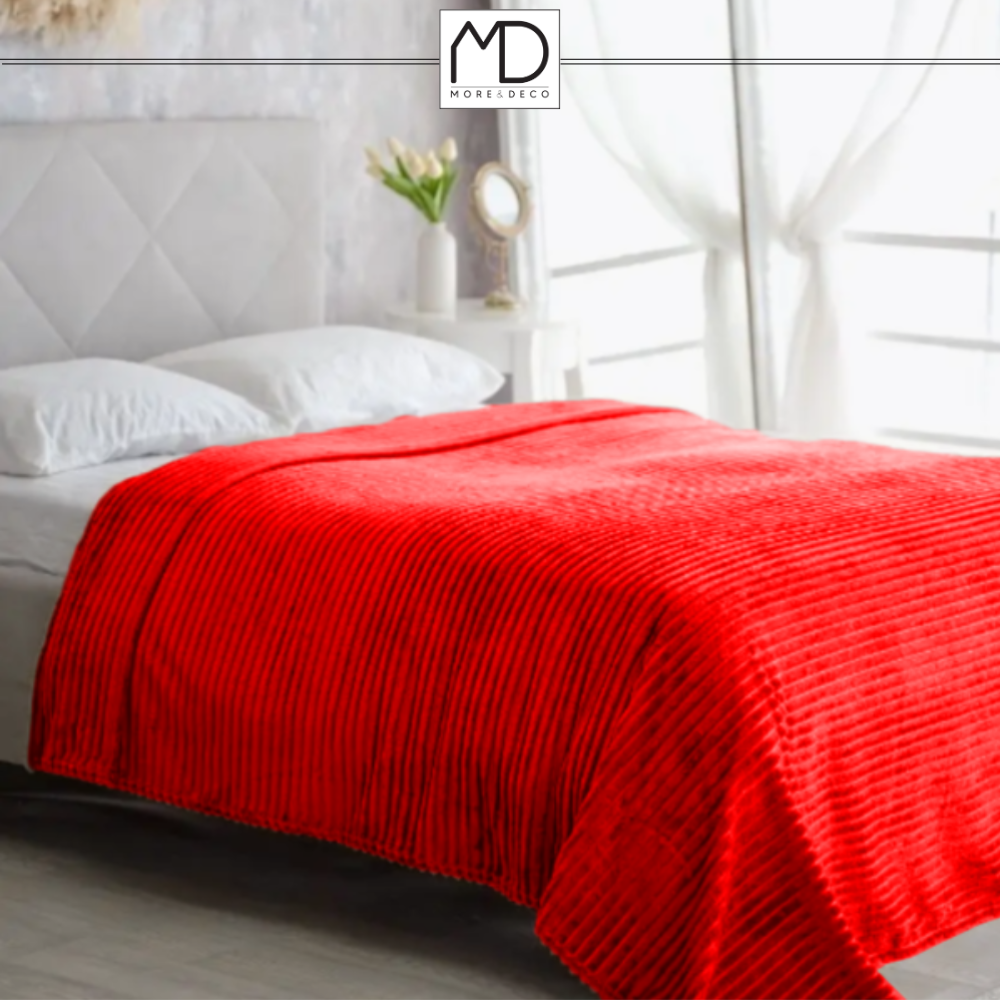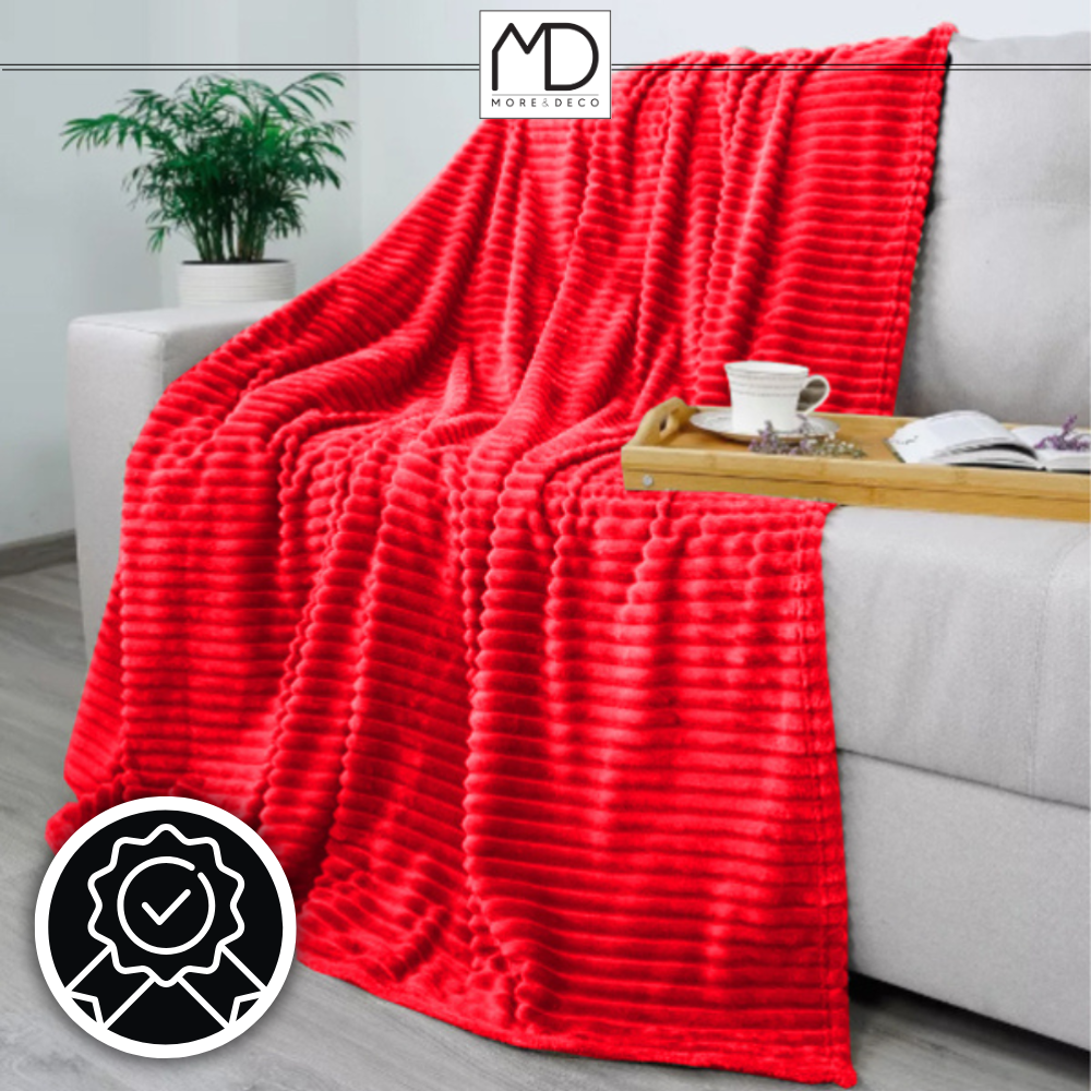 Koc czerwony 200x220cm wytłaczany paski łóżko narzuta duża stylowa ochrona