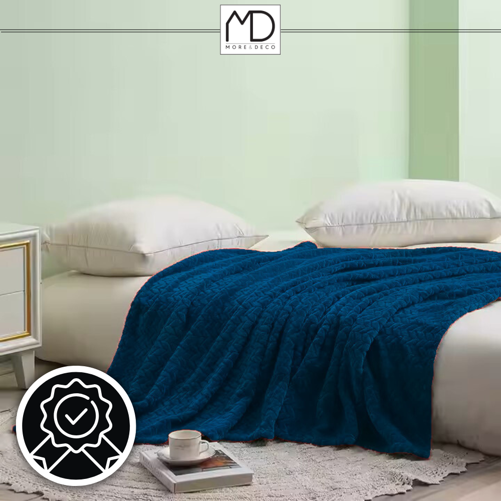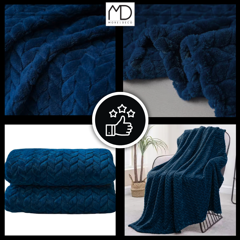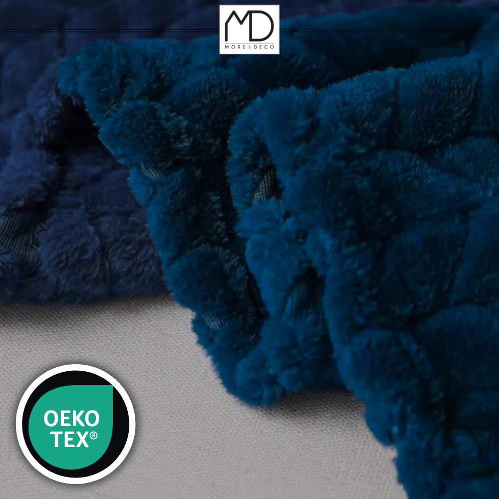 Koc narzuta 200x220 cm kapa pled tłoczony jedełka granatowy ciepły miękki