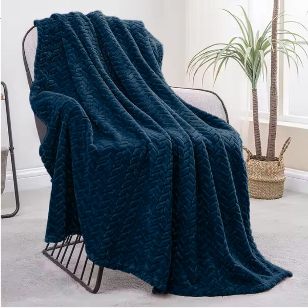 ⭐️KOC NARZUTA 200X220 CM KAPA PLED TŁOCZONY JODEŁKA GRANATOWY CIEPŁY MIĘKKI⭐️