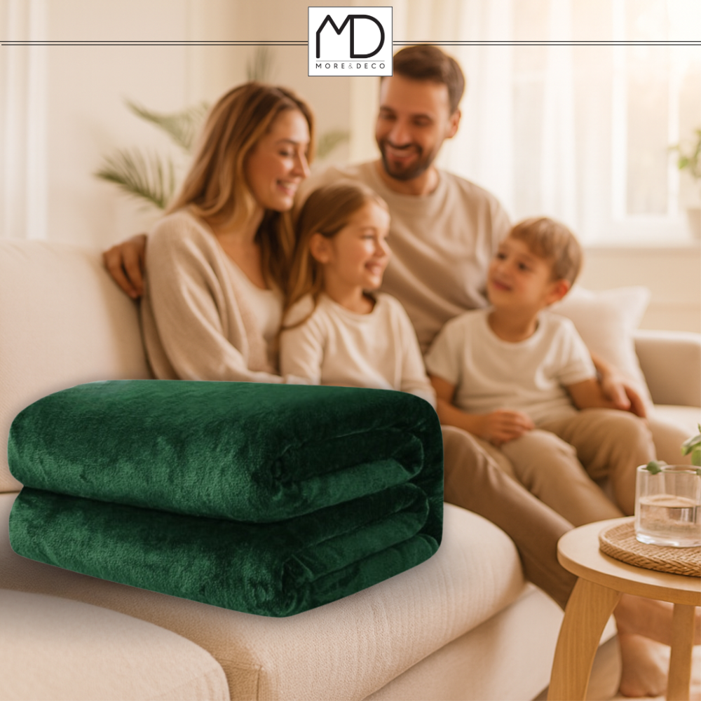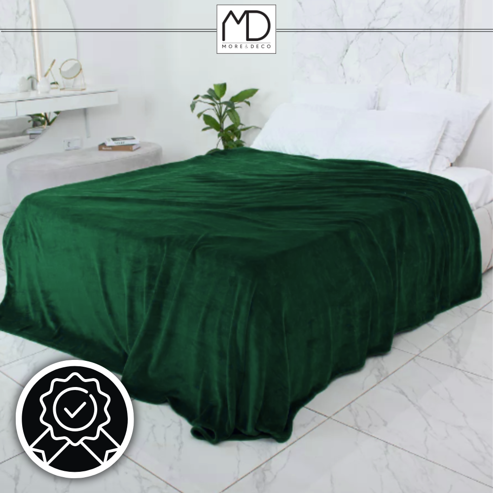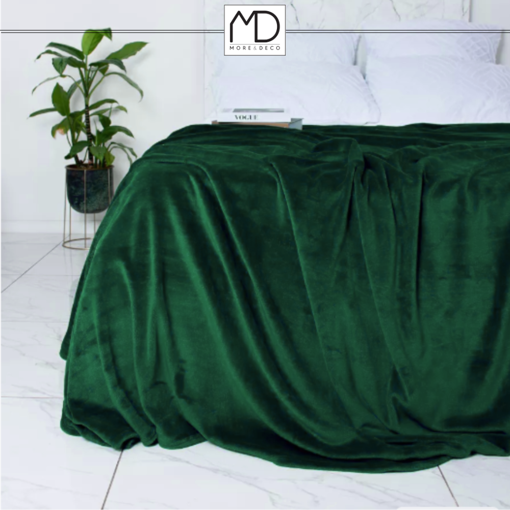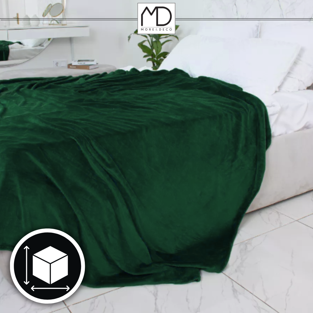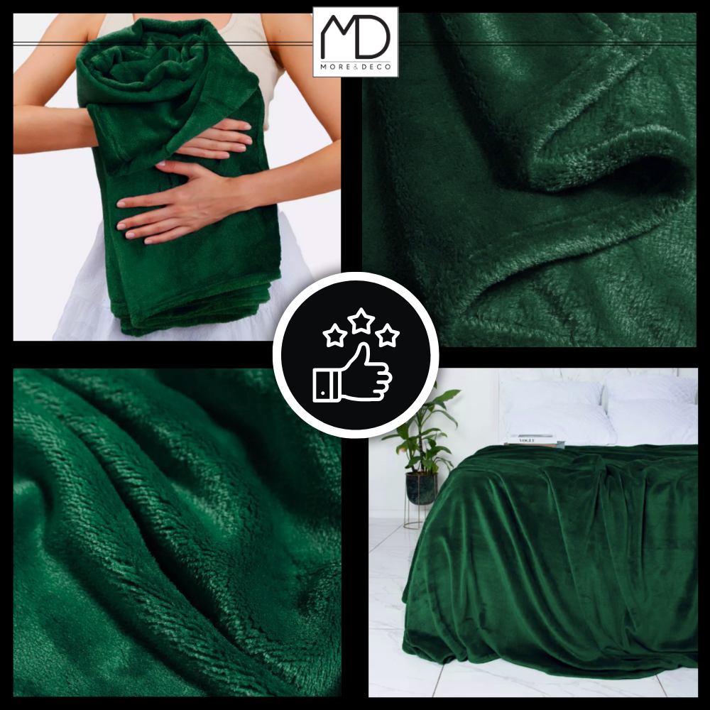 Koc narzuta na łóżko 200x220 cm pled gładki ciepły zielony prezent urodziny
