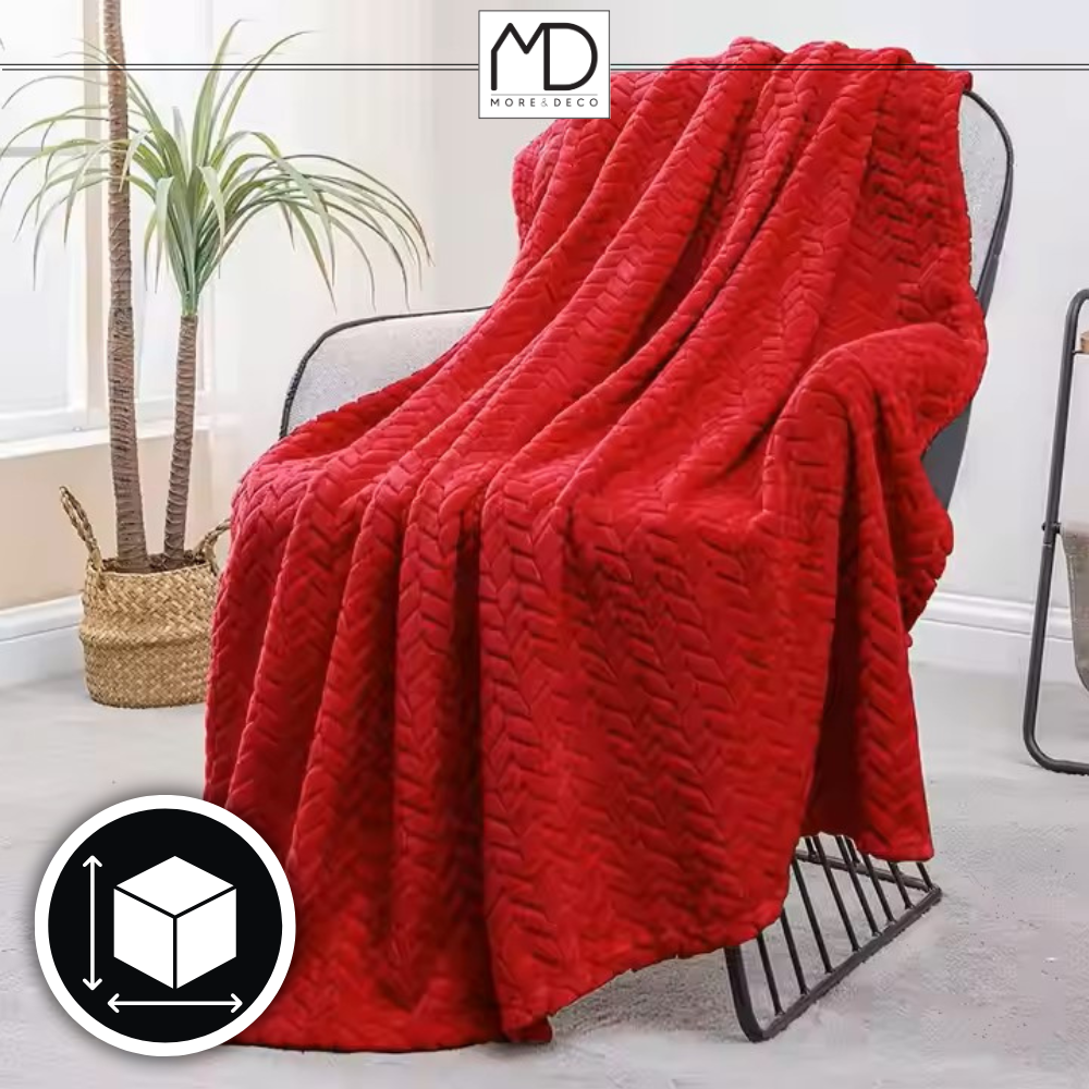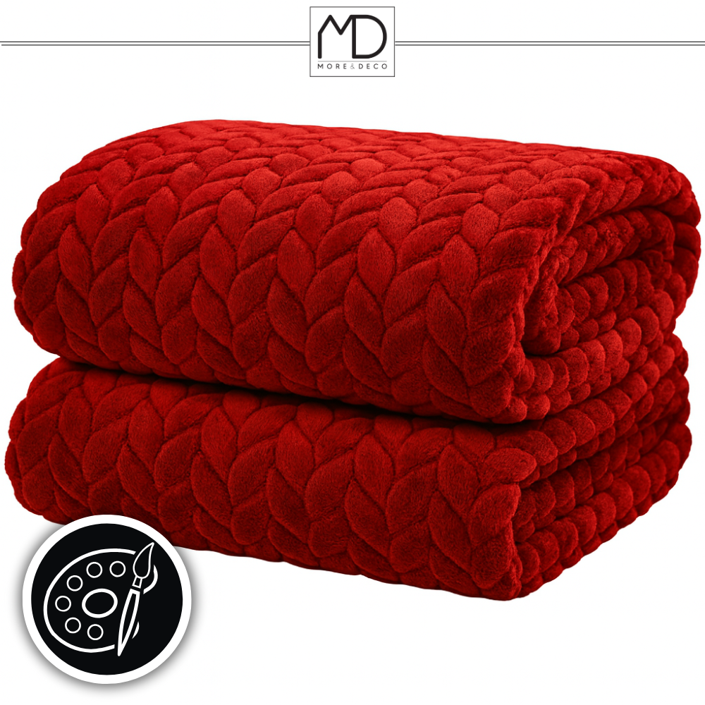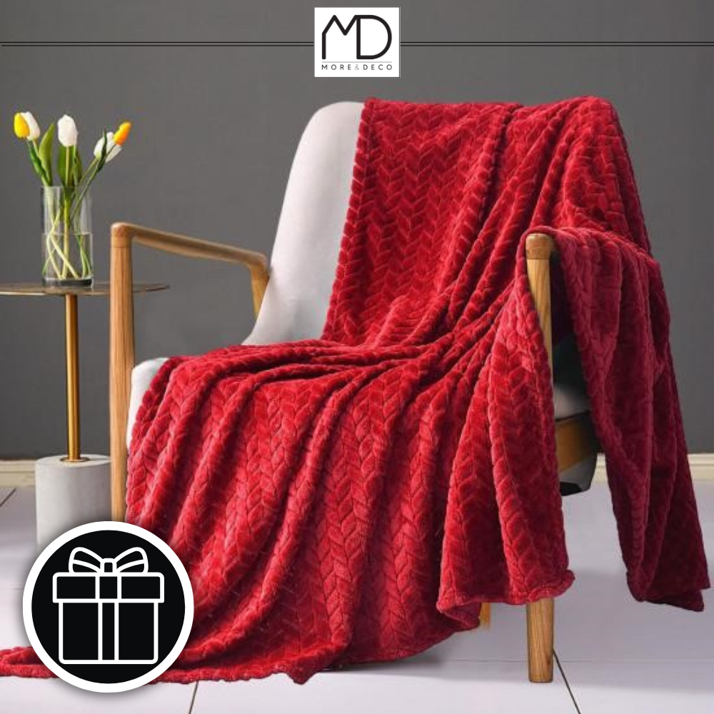 Koc narzuta wytłaczana 200 x 220 cm czerowna jodełka prezent miękki ciepły
