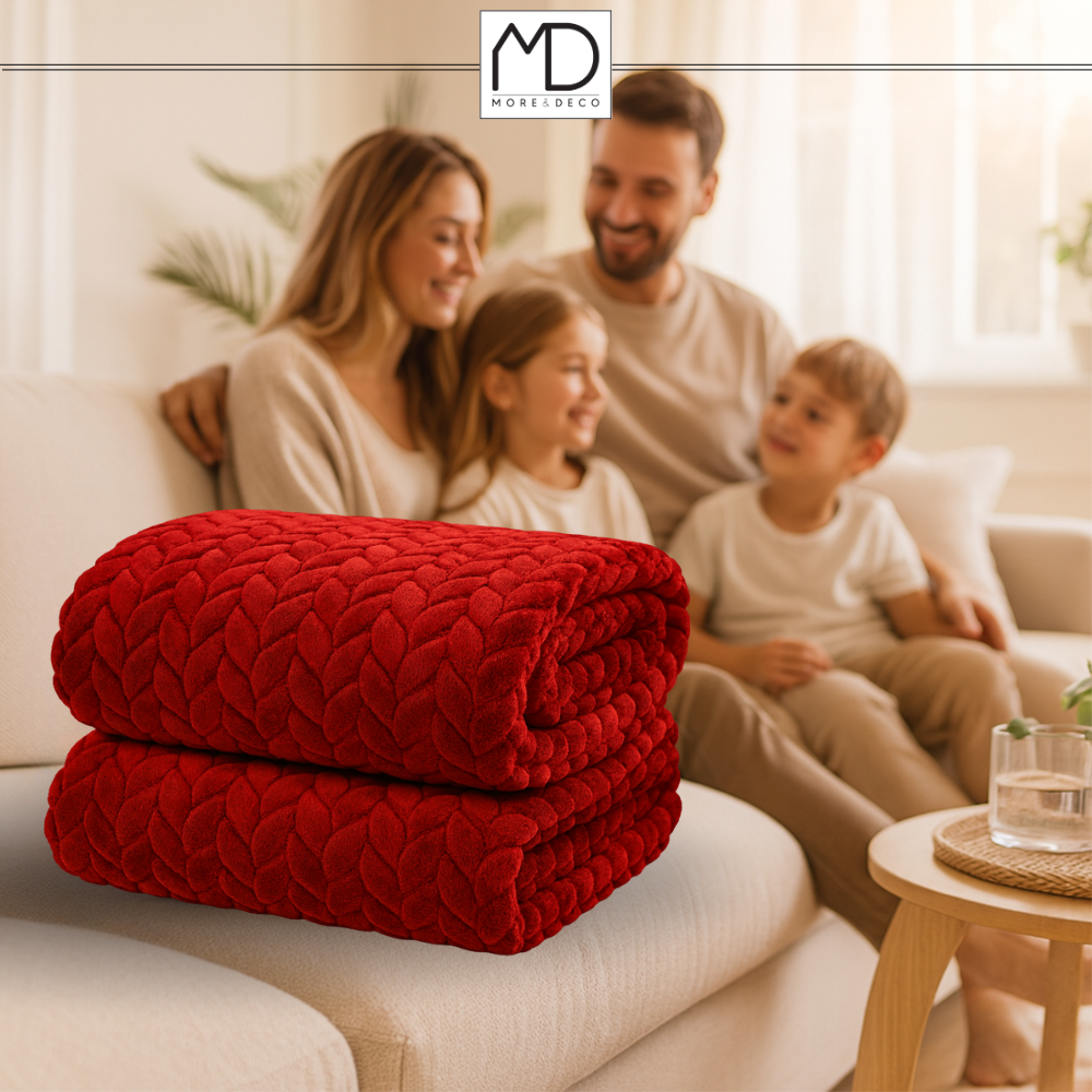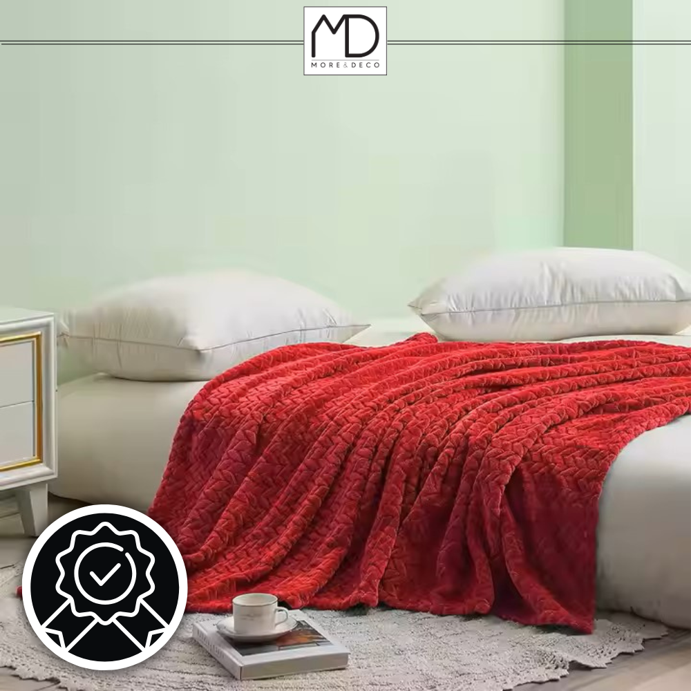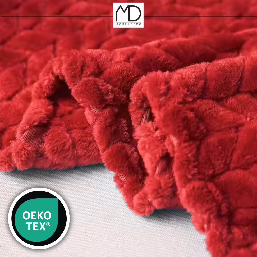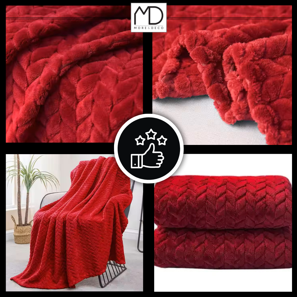 Koc narzuta wytłaczana 200 x 220 cm czerowna jodełka prezent miękki ciepły