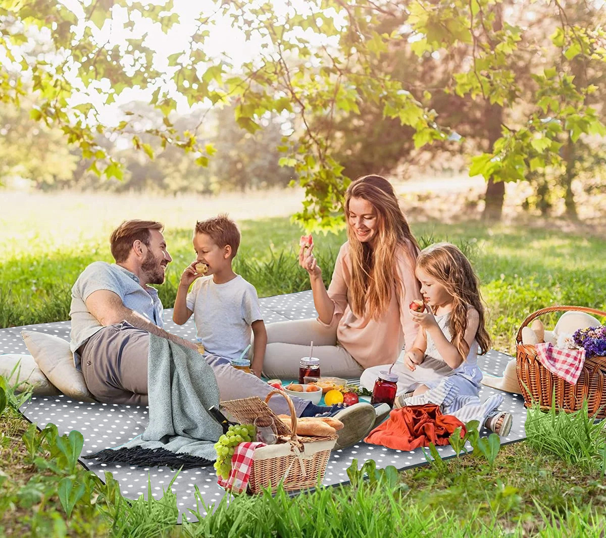 Jego duży rozmiar zapewnia mnóstwo przestrzeni do relaksu dla całej rodziny, lub grupy przyjaciół podczas letnich pikników w parku i na plaży. Bez obaw możesz go rozłożyć nawet na mokrej trawie lub piasku – posiada specjalną warstwę, która chroni go od spodu przed zabrudzeniami i wilgocią.