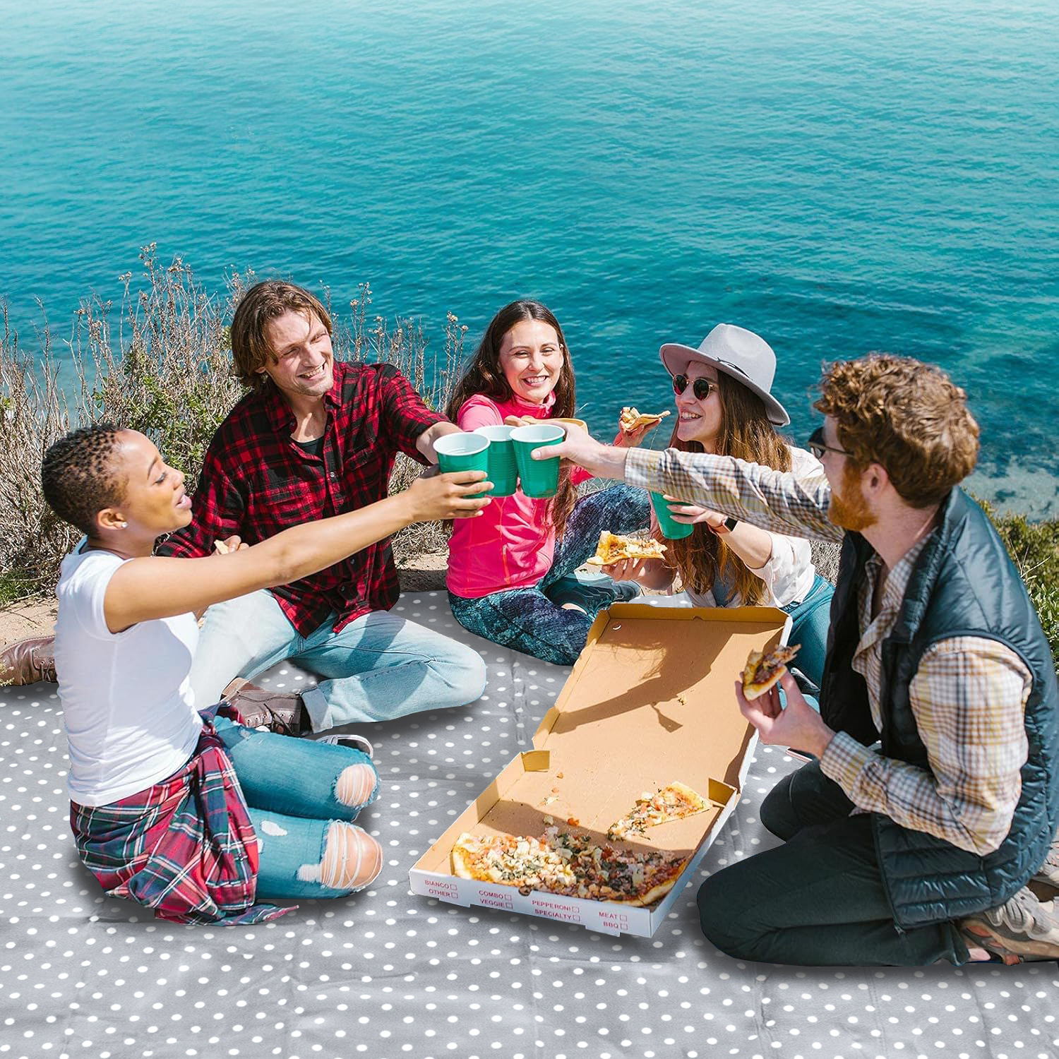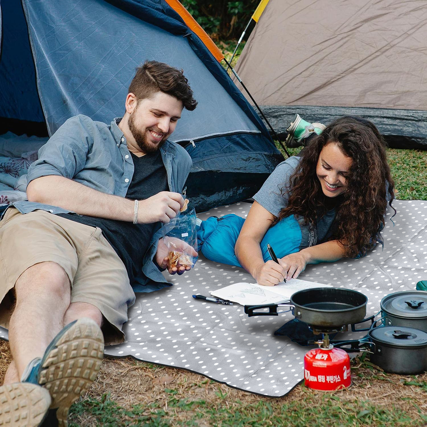 ☀️ W zestawie dołączyliśmy cztery specjalne kotwy mocujące koc do podłoża, dzięki czemu nawet silny wiatr mu niestraszny!
