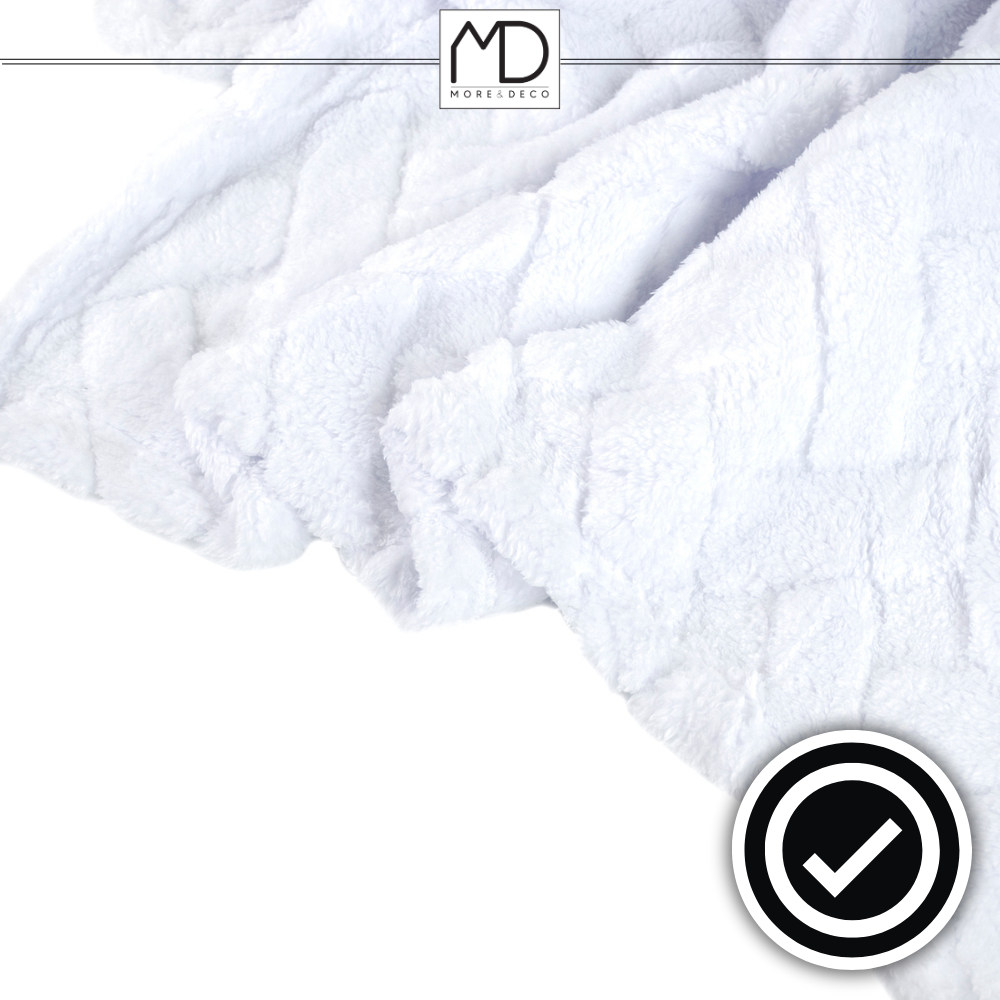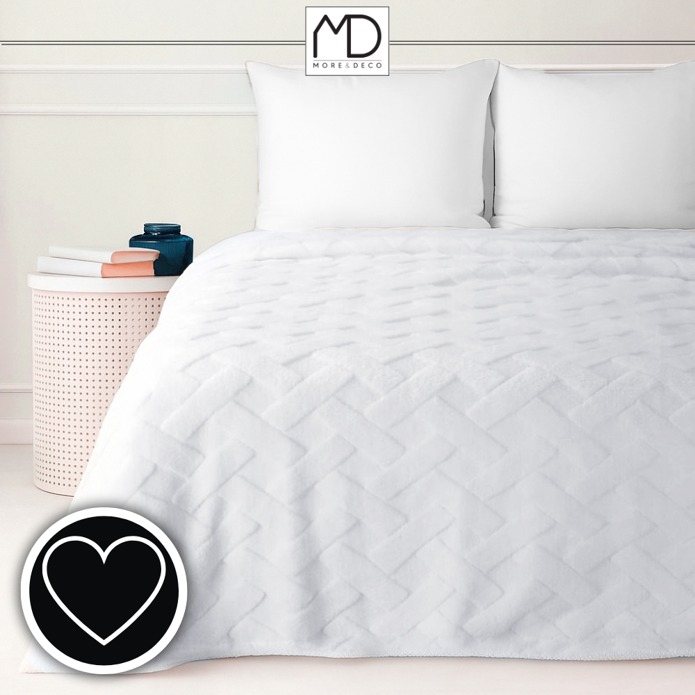 Koc pled 200×220 cm pled narzuta 340g/m² biała tłoczona jodełka More&Deco