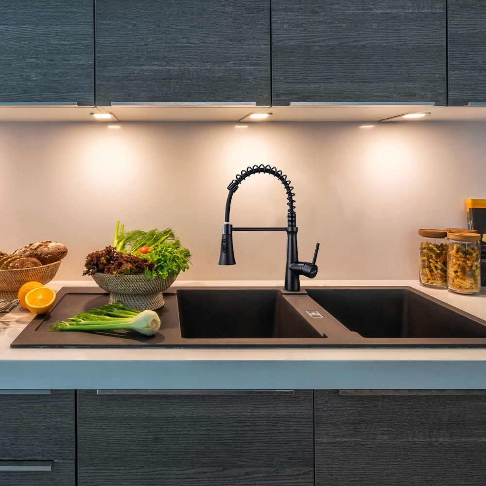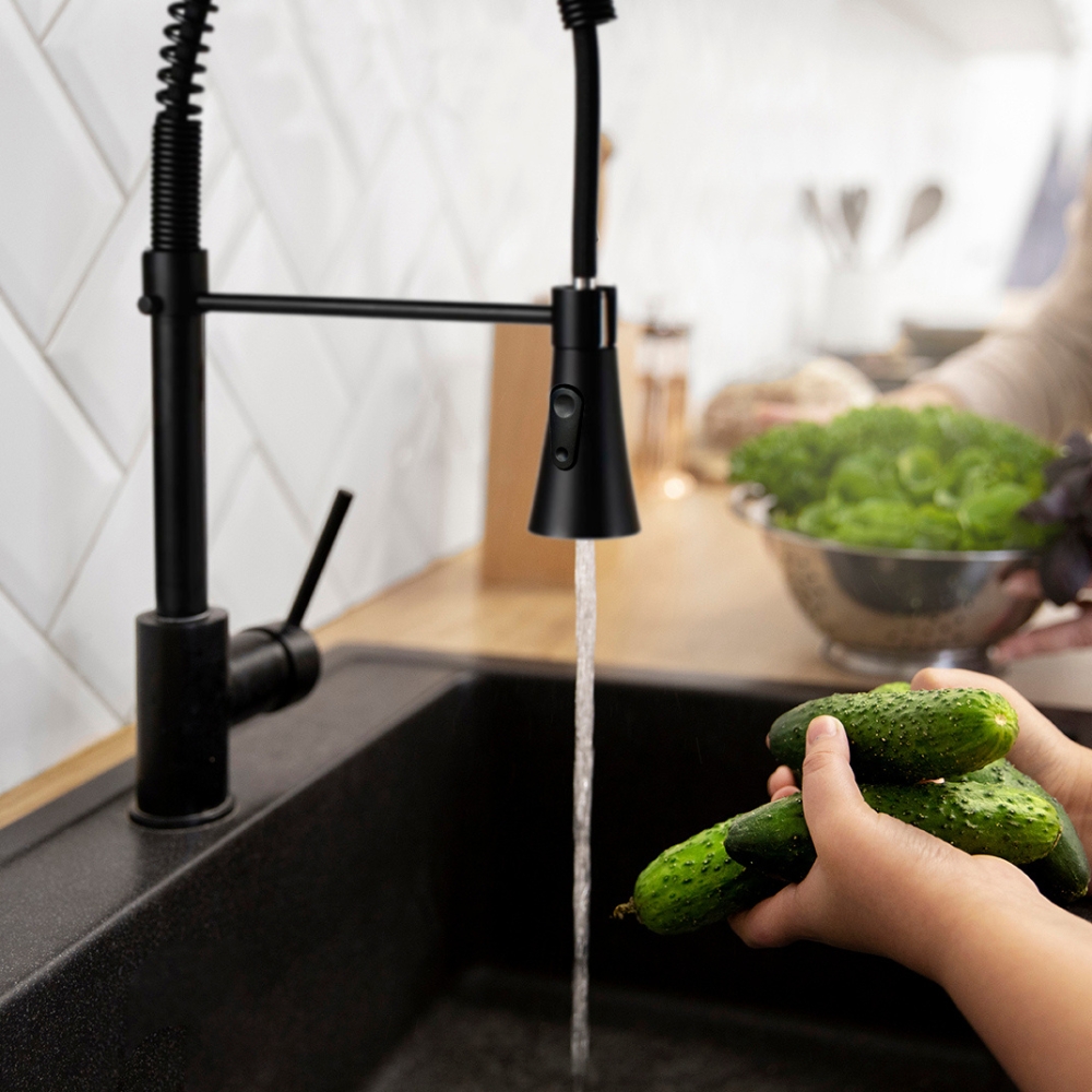 Dzięki elastycznej, wyciąganej wylewce i obrotowej konstrukcji, korzystanie z baterii jest bardzo wygodne zapewnia maksymalny komfort użytkowania, a wysokiej jakości materiały zapewniają trwałość i odporność na codzienne zużycie.