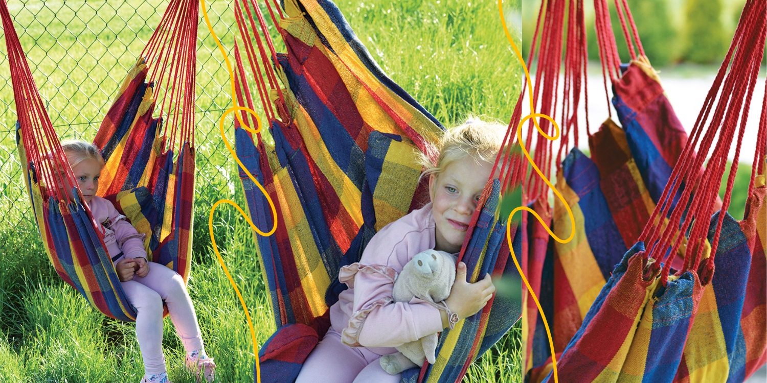 Hamak wykonany jest z w 100% z bawełny, dzięki czemu jest przyjemny w dotyku oraz zapewnia prawidłową wentylację w upalne dni.