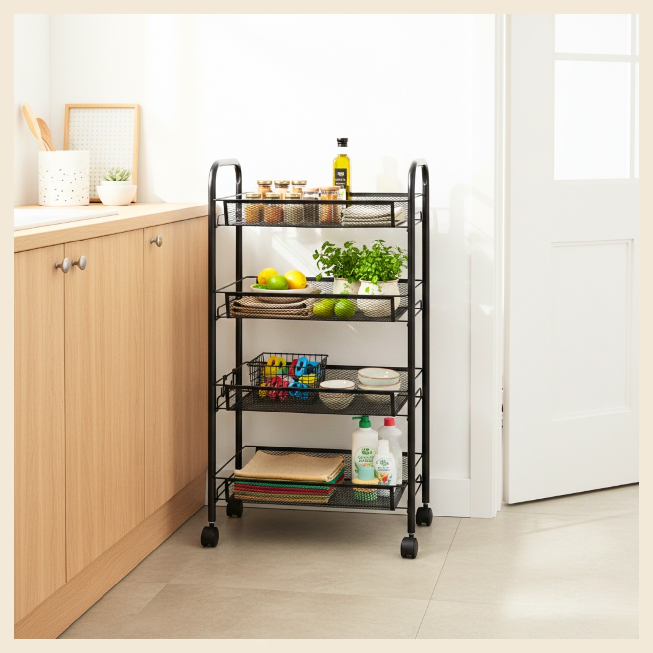 ➡️ Model Quattro – świetny do kuchni i innych pomieszczeń dziennych i biurowych➡️ 4 praktyczne poziomy – pomagają utrzymać porządek i mieć wszystko w zasięgu ręki