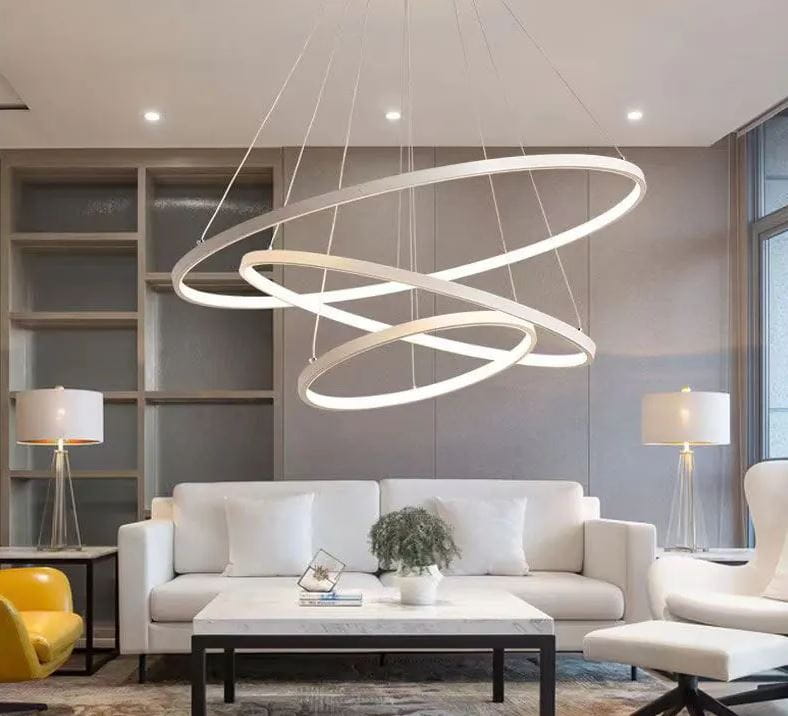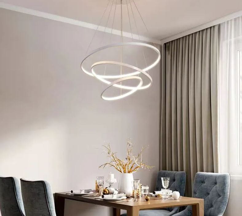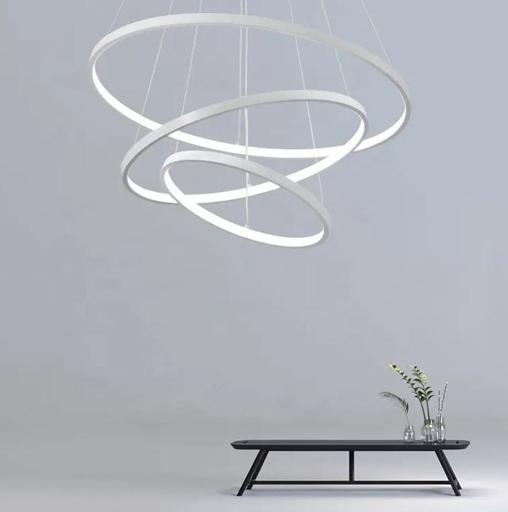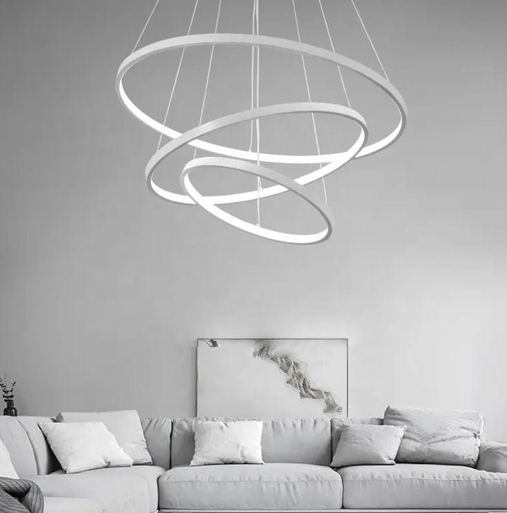 ⭐ Piękny i elegancki żyrandol składający się z 3 białych obręczy, których wysokość możesz wygodnie regulować.