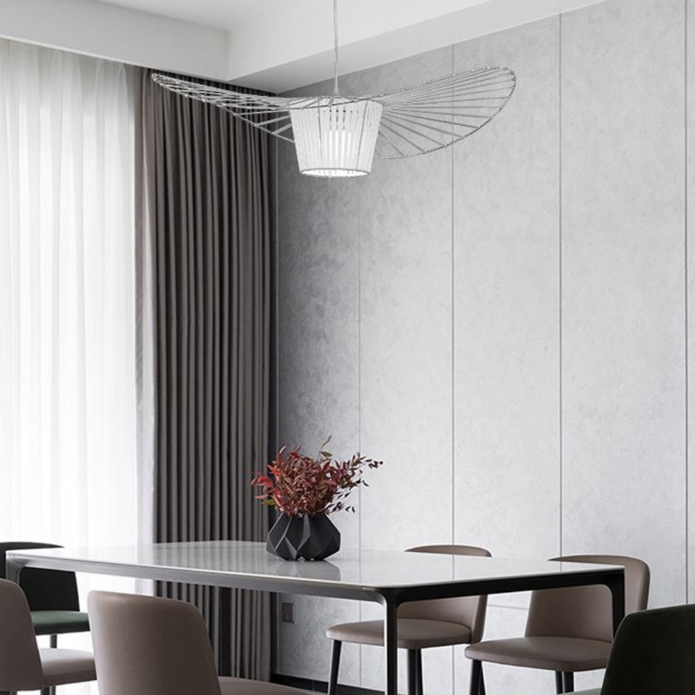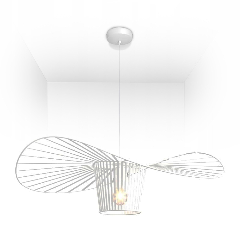 Żyrandol wyróżnia się swoim niebanalnym kształtem, który wyglądem przypomina elegancki damski kapelusz.
