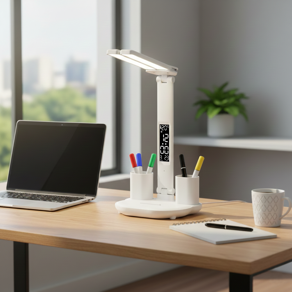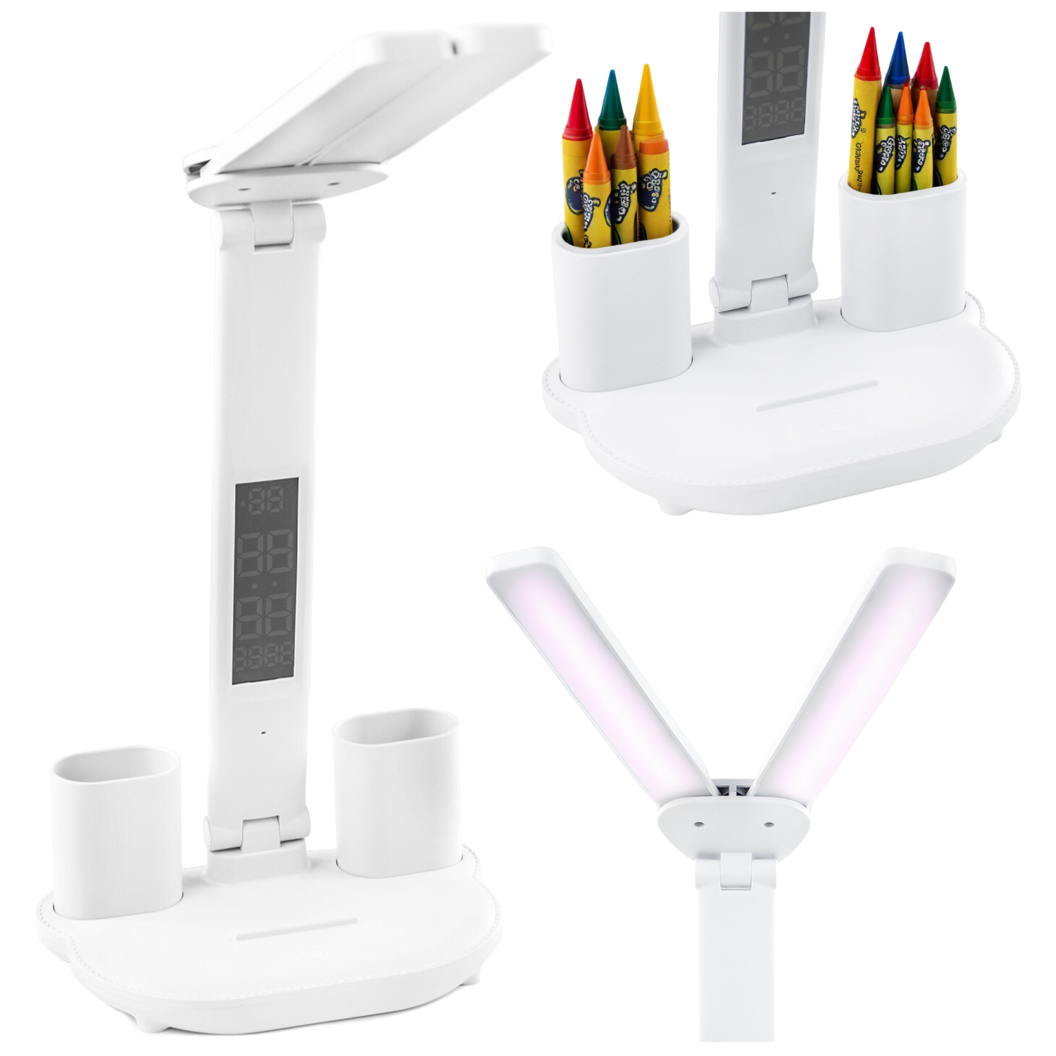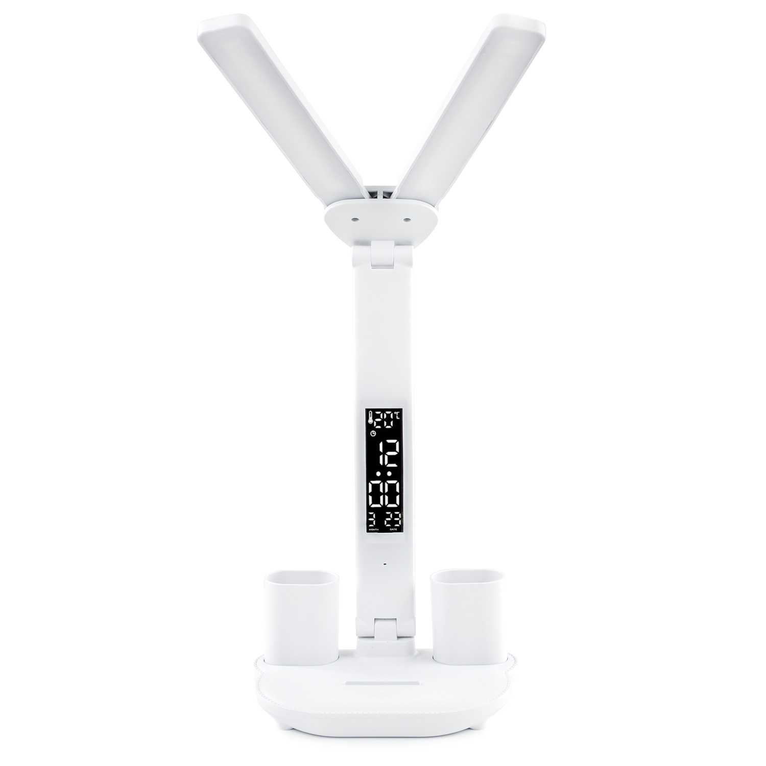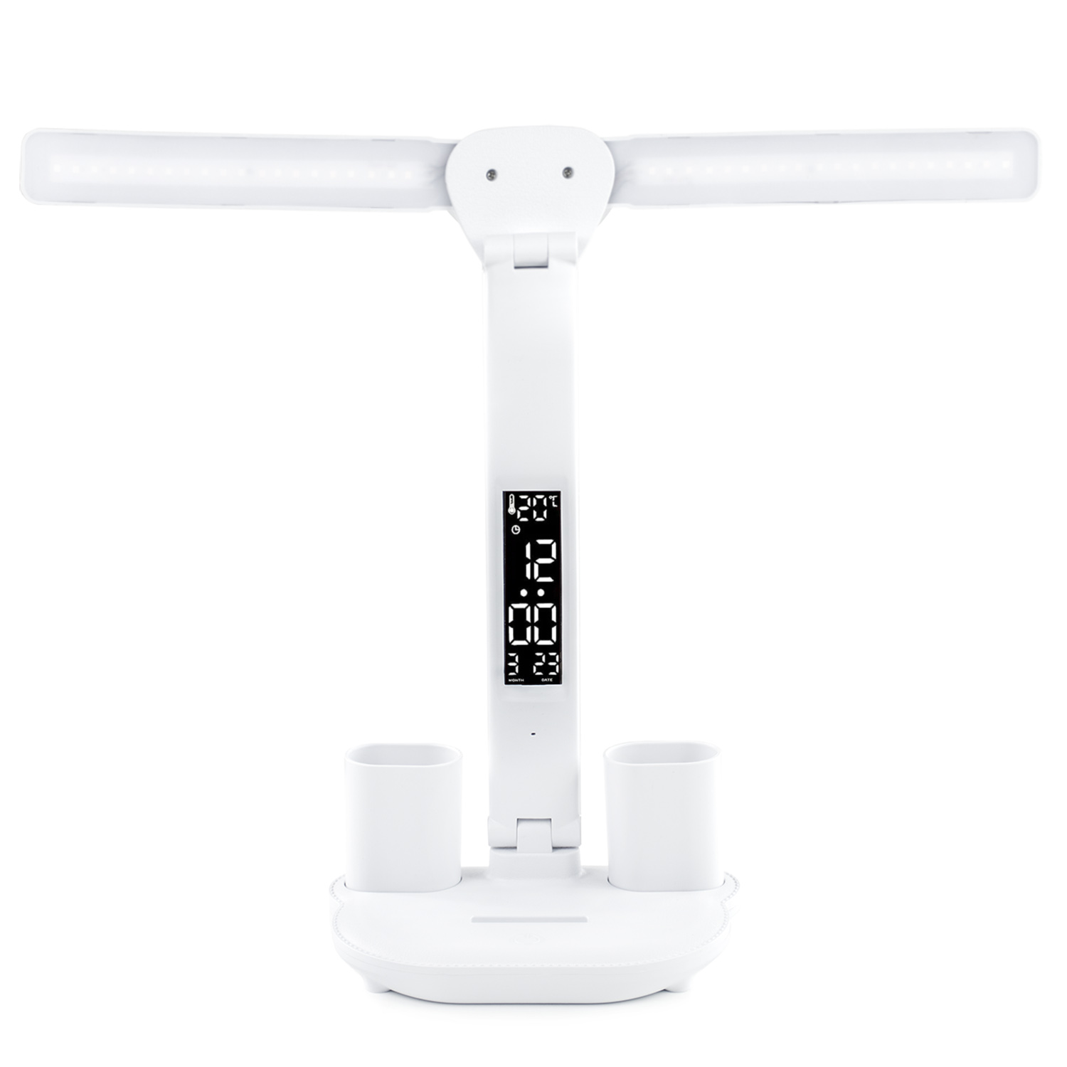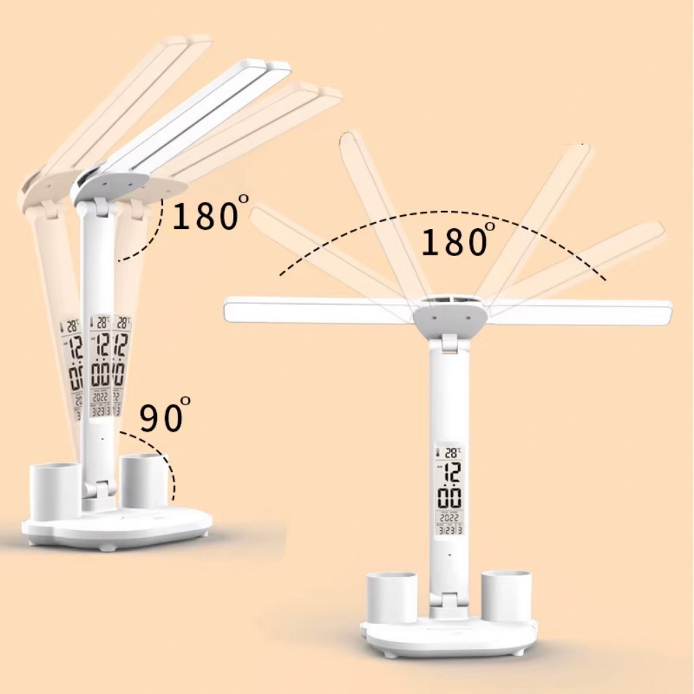 ✳️Mamy dla Ciebie idealne rozwiązanie! Wielofunkcyjna lampka biurkowa LED z zegarem, temperaturą i organizerem to must-have dla każdej kobiety, która ceni styl, wygodę i funkcjonalność. Zapewnia idealne oświetlenie do pracy, nauki czy relaksu, a dzięki wbudowanej podstawce na telefon i organizerowi, wszystko masz w zasięgu ręki!